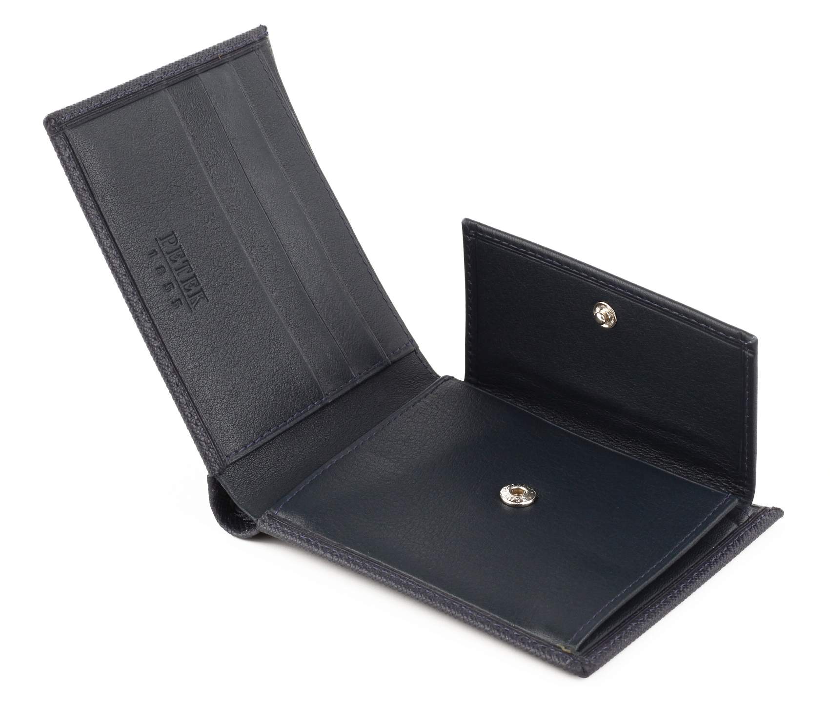 Портмоне Petek - это классический мужской аксессуар, который станет незаменимым помощником в повседневной жизни. Оно выполнено из высококачественной натуральной кожи, что придает ему элегантный и стильный вид. Портмоне имеет двойное сложение, что позволяет удобно хранить деньги, пластиковые карты и монеты. Внутри есть 2 отделения для денег, 3 отсека для карт и монетница на кнопке, что делает его очень практичным и удобным в использовании.