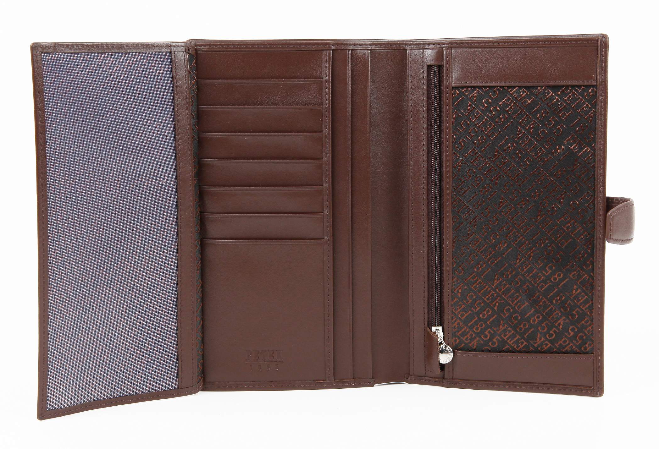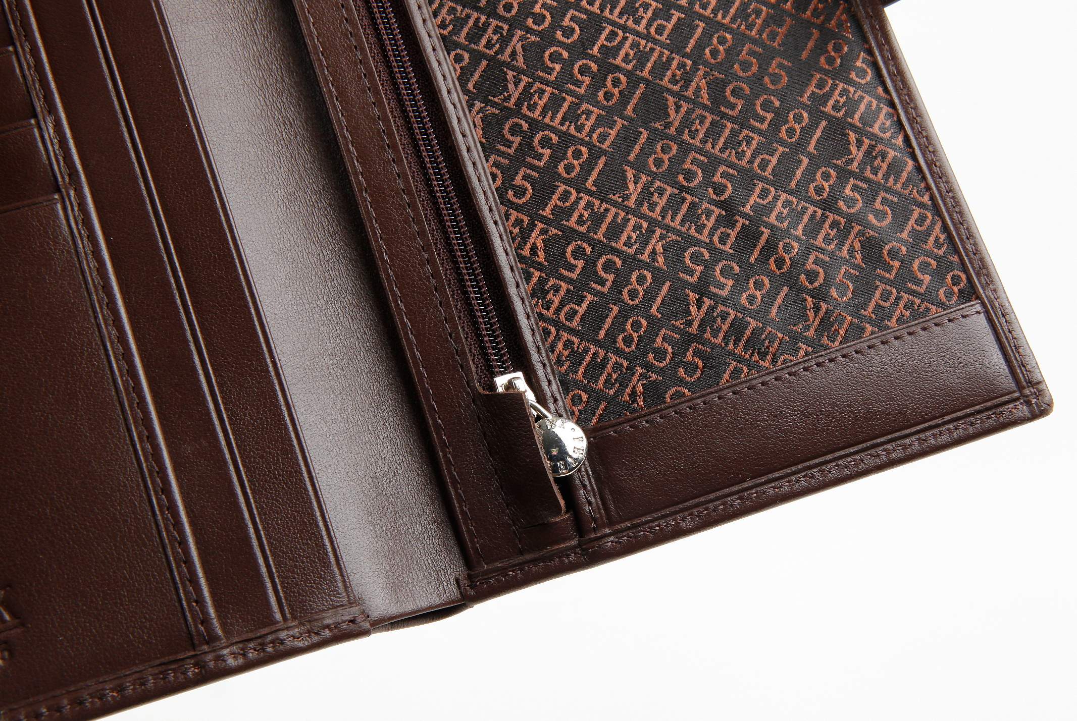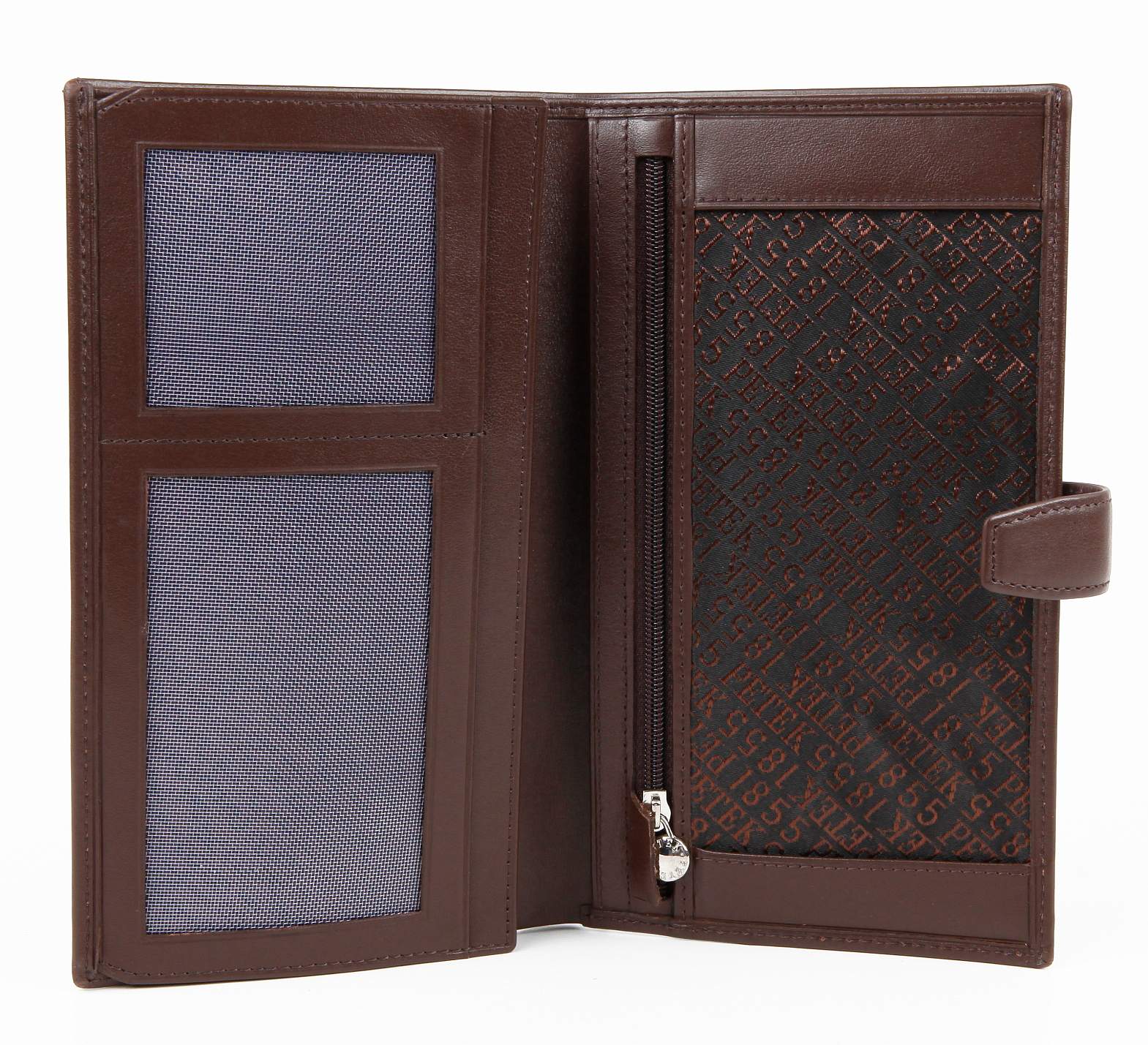 Мужское портмоне из натуральной кожи коричневого цвета. Элегантная модель. Одно отделение для купюр + четыре больших кармана, семь карманов для кредиток, карман на молнии.