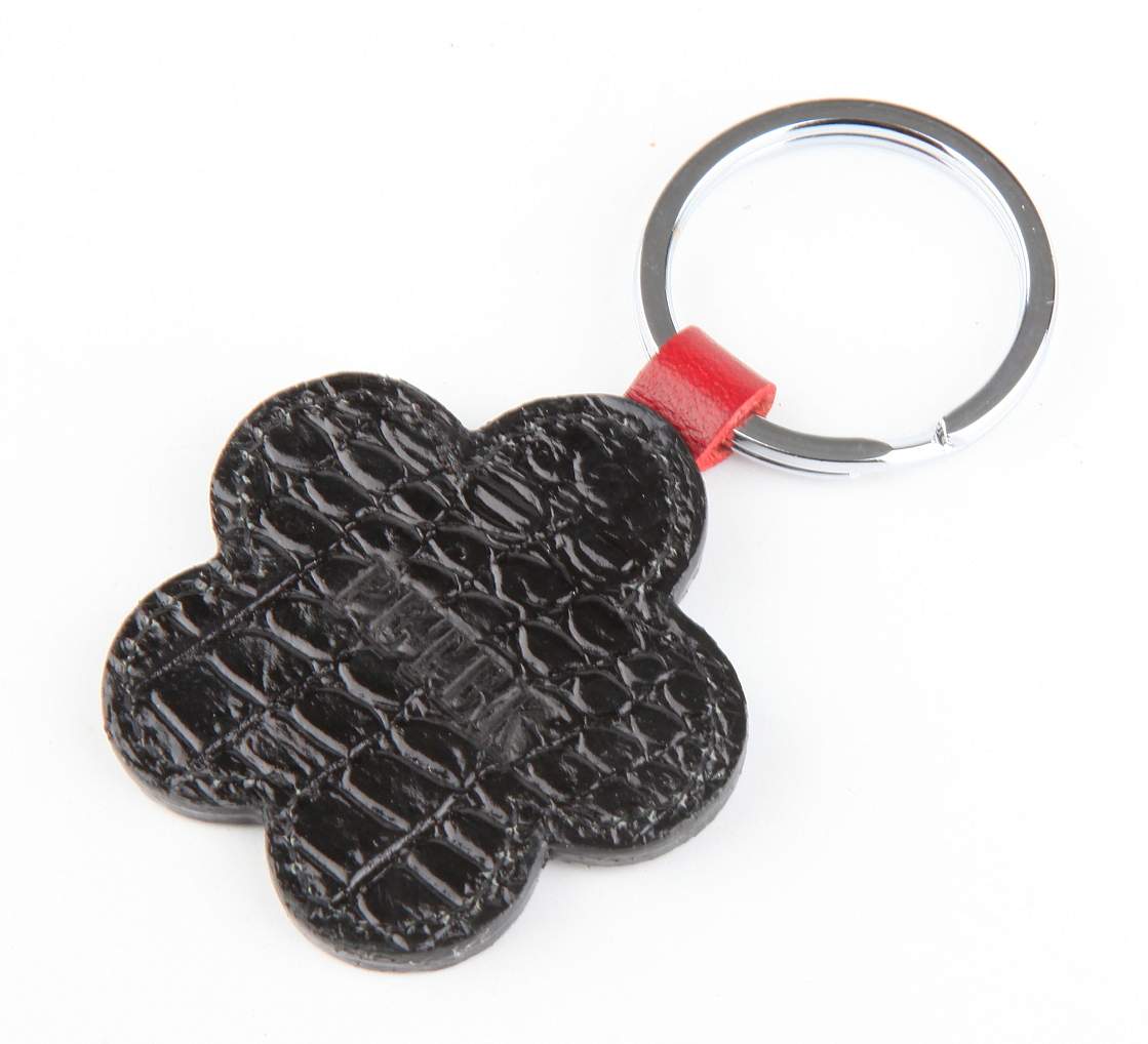 Веселый брелок PETEK в виде цветка из натуральной кожи . Приятный аксессуар для модниц. Хромированное кольцо.