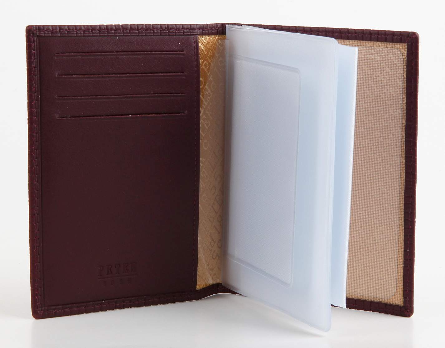 Обложка для автодокументов из превосходной кожи. Удобная и функциональная модель. В этой модели предусмотрены прорези для четырех кредитных карт, прозрачный кармашек для прав и съемный блок для документов, состоящий из несколько прозрачных страниц.
