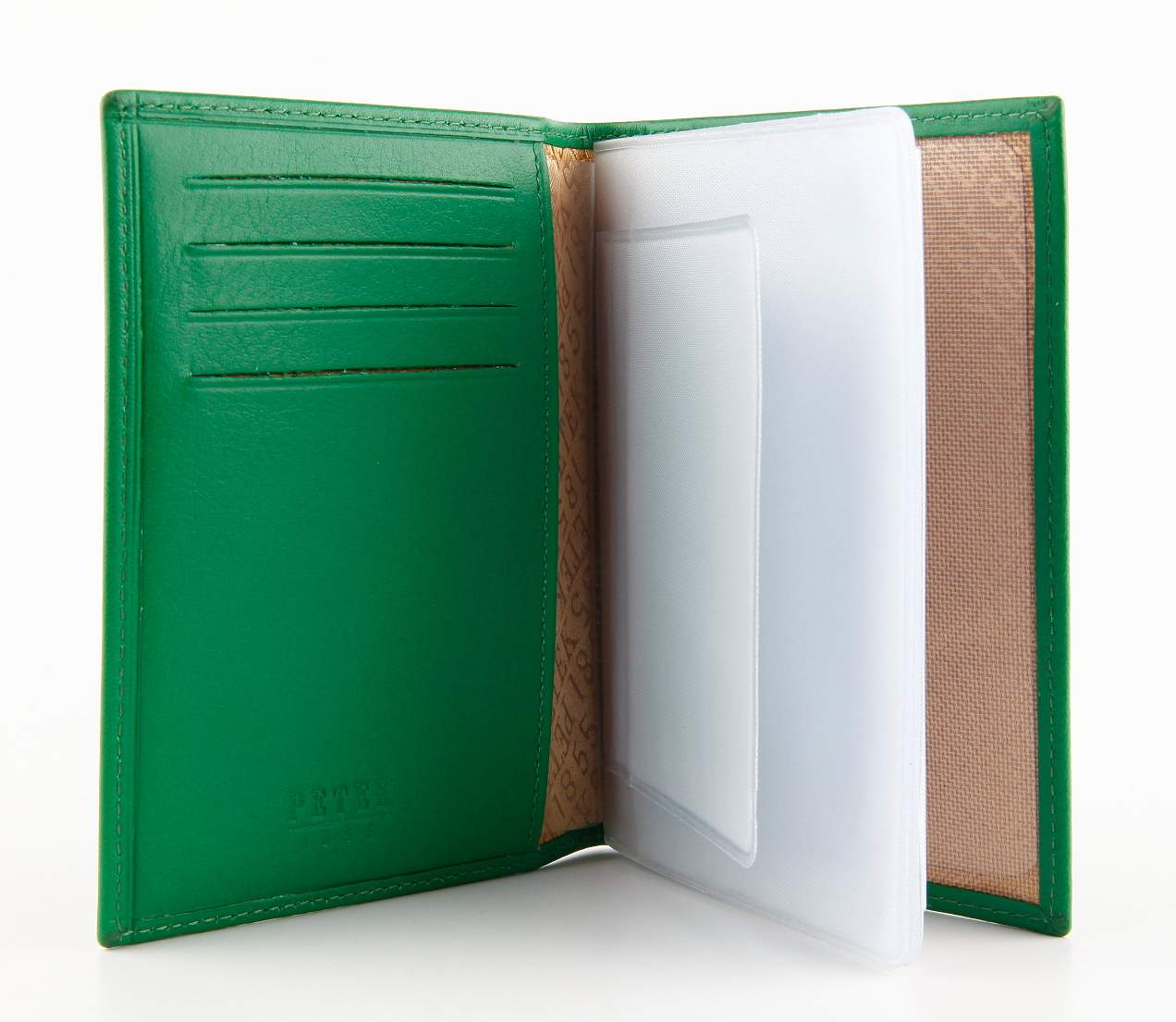 Обложка для автодокументов из превосходной кожи. Удобная и функциональная модель. В этой модели предусмотрены прорези для четырех кредитных карт, прозрачный кармашек для прав и съемный блок для документов, состоящий из несколько прозрачных страниц.