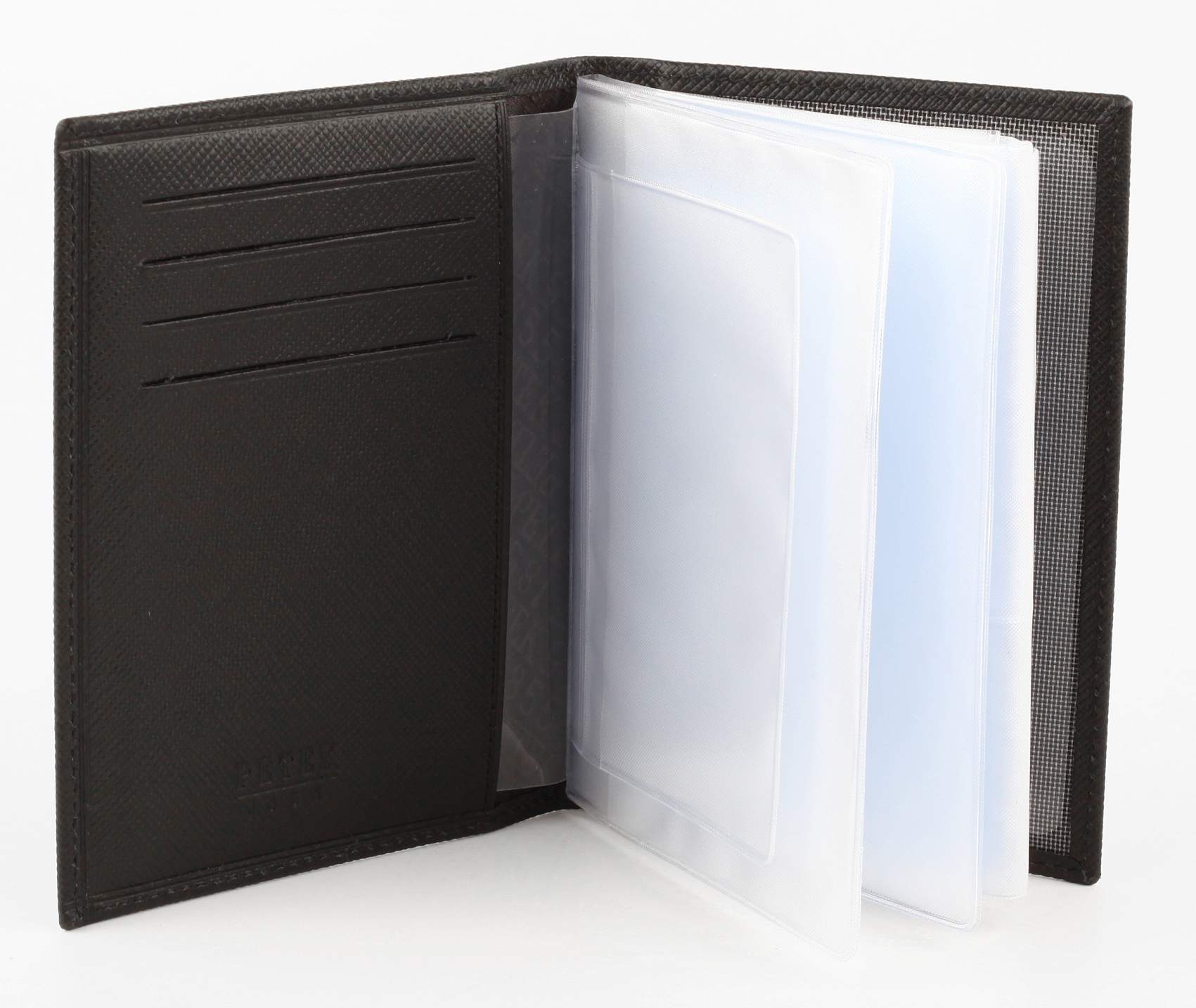Обложка для автодокументов из превосходной кожи. Удобная и функциональная модель. В этой модели предусмотрены прорези для четырех кредитных карт, прозрачный кармашек для прав и съемный блок для документов, состоящий из несколько прозрачных страниц.