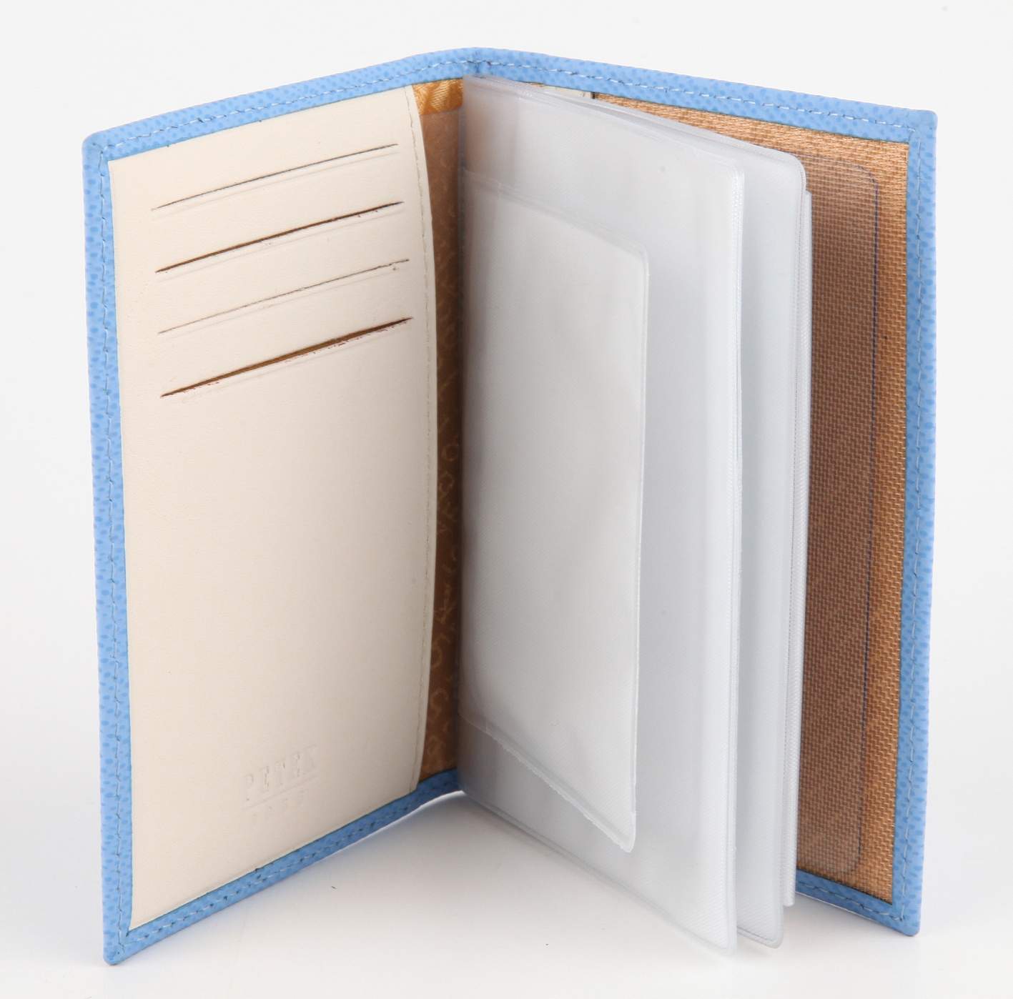 Обложка для автодокументов из превосходной кожи. Удобная и функциональная модель. В этой модели предусмотрены прорези для четырех кредитных карт, прозрачный кармашек для прав и съемный блок для документов, состоящий из несколько прозрачных страниц.