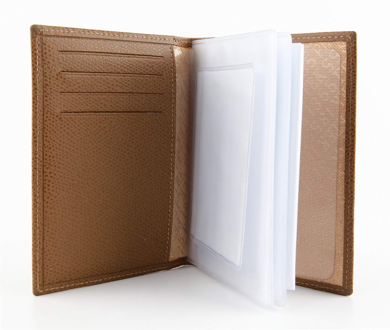 Обложка для автодокументов из превосходной кожи. Удобная и функциональная модель. В этой модели предусмотрены прорези для четырех кредитных карт, прозрачный кармашек для прав и съемный блок для документов, состоящий из несколько прозрачных страниц.