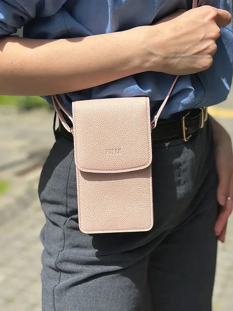 Сумка-чехол Petek для смартфона из натуральной кожи выполнена в виде планшета и носится через плечо на ремне.