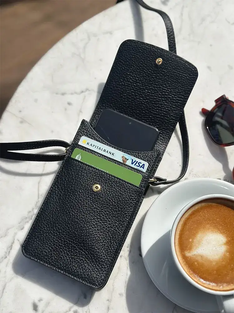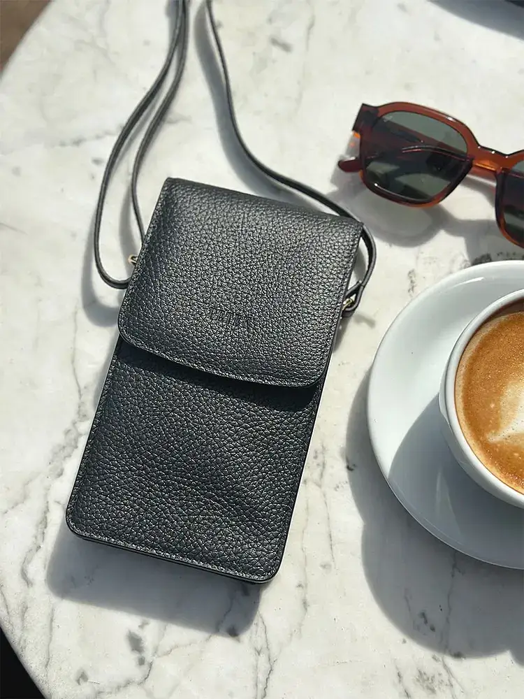 Сумка-чехол Petek для смартфона из натуральной кожи выполнена в виде планшета и носится через плечо на ремне.