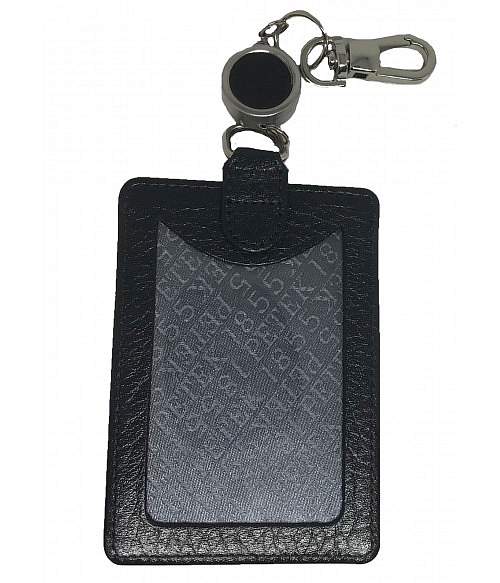 Состоит из двух кармашков, один с пластиковым окошком один внутренний, на рулетке. Закрывается на кнопку.