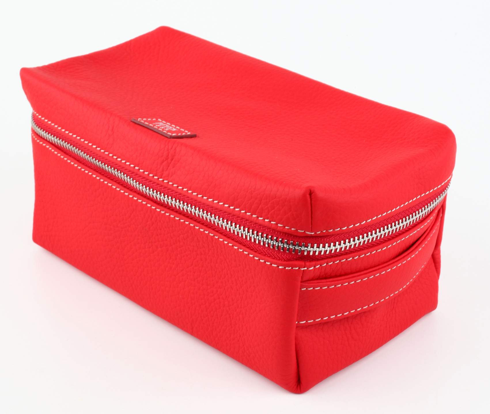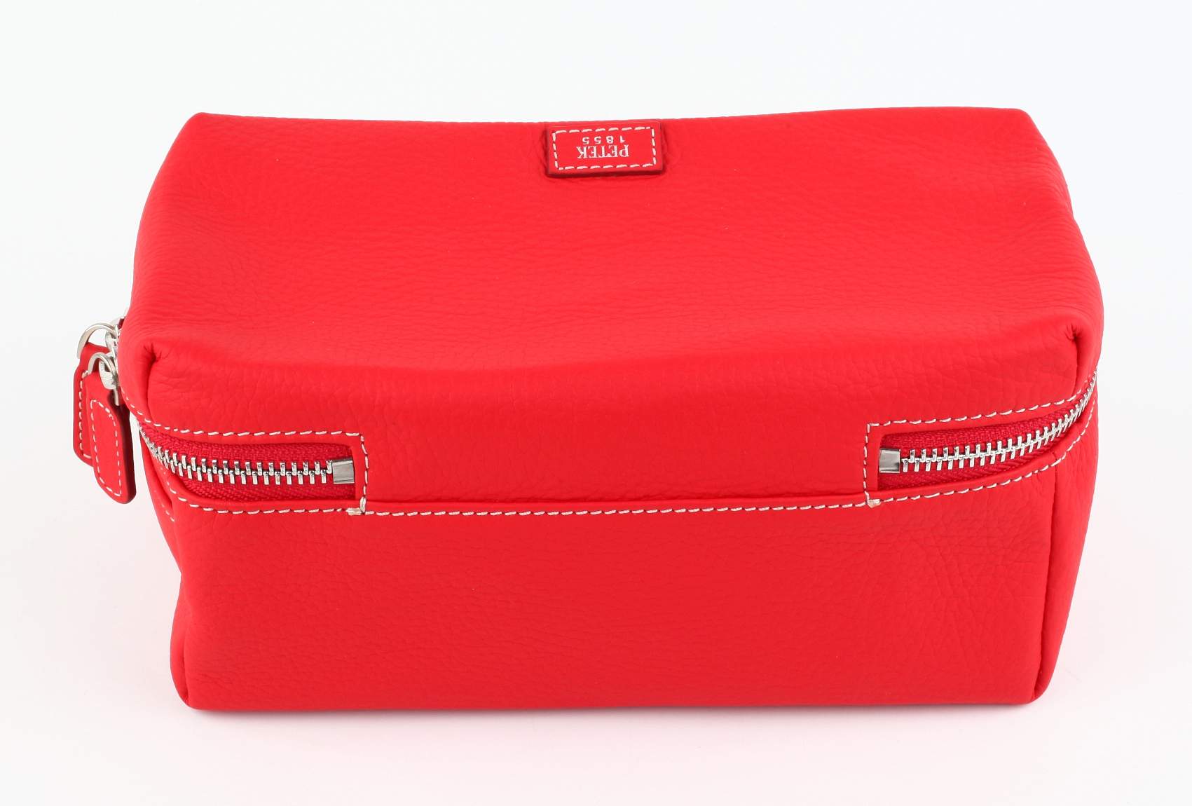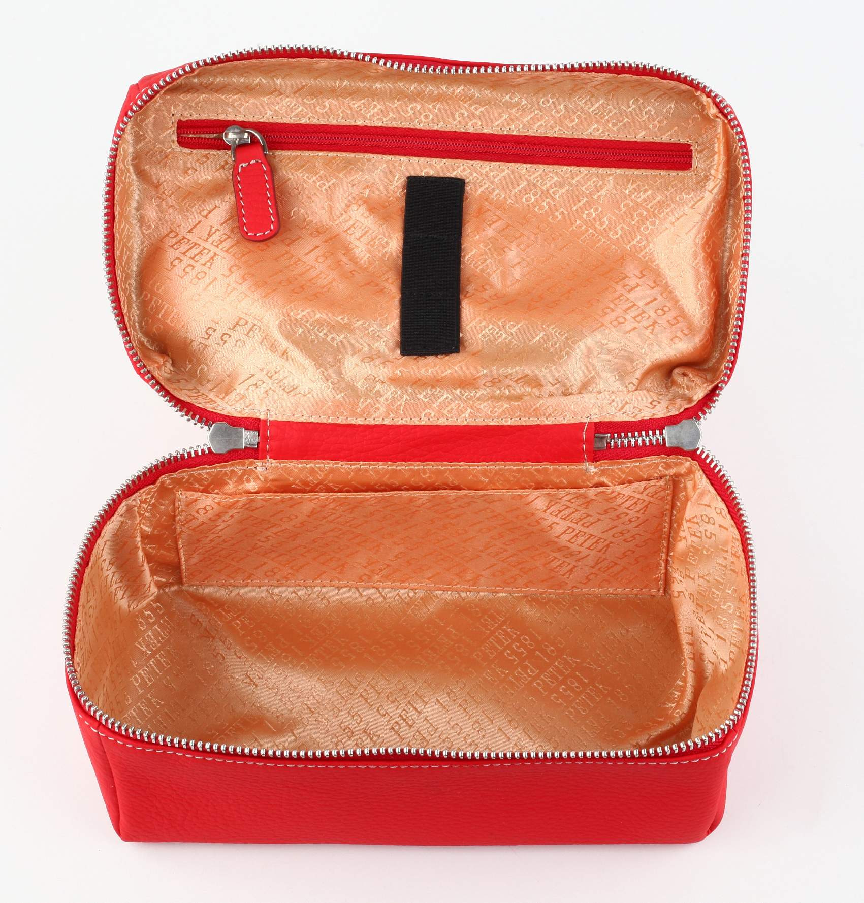 Черная дорожная косметичка из натуральной кожи Petek. Закрывается на молнию