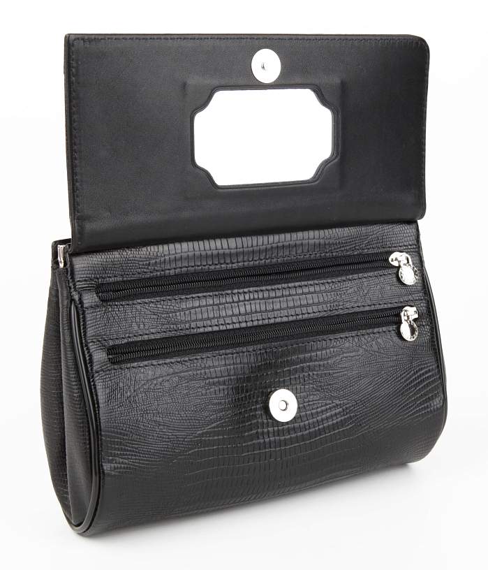 Женская косметичка Petek из натуральной кожи. Внутри: основное и дополнительное отделение. Зеркало.