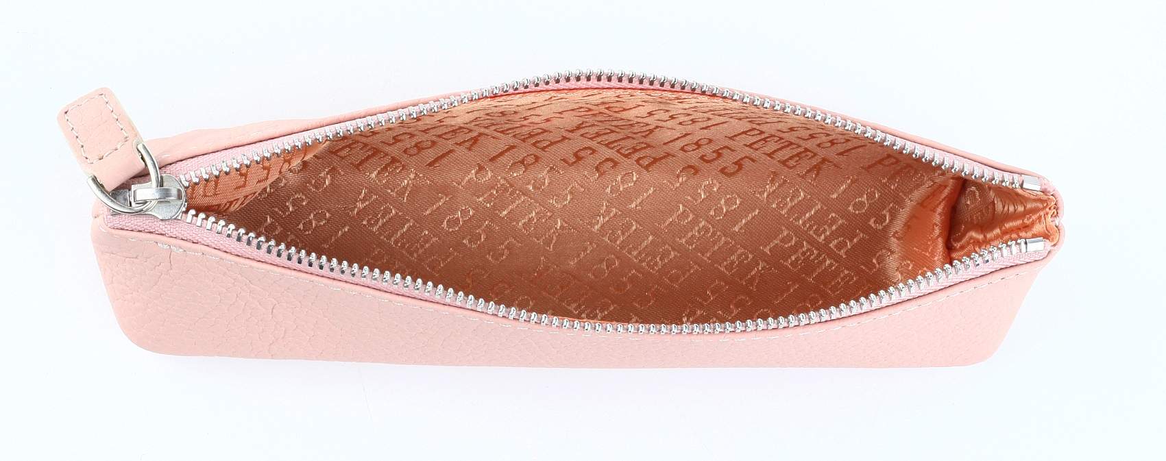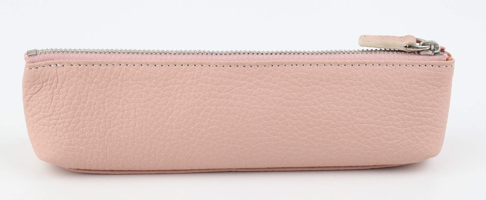 Кожаный футляр для косметики из натуральной кожи. Одно отделение, вместимость более 10 предметов. Имеет треугольную форму. Закрывается на молнию