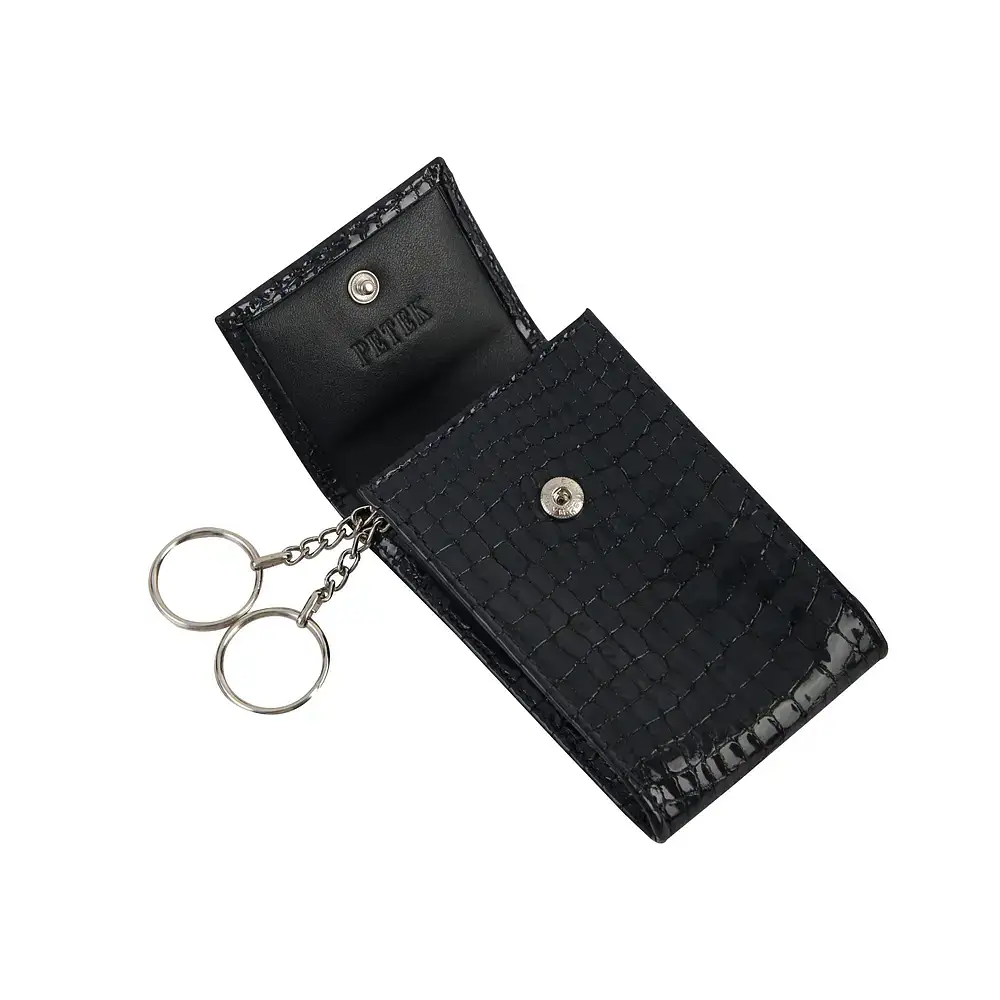 Защёлкивается на кнопку. В ней можно разместить ключи длиной до 9 сантиметров.