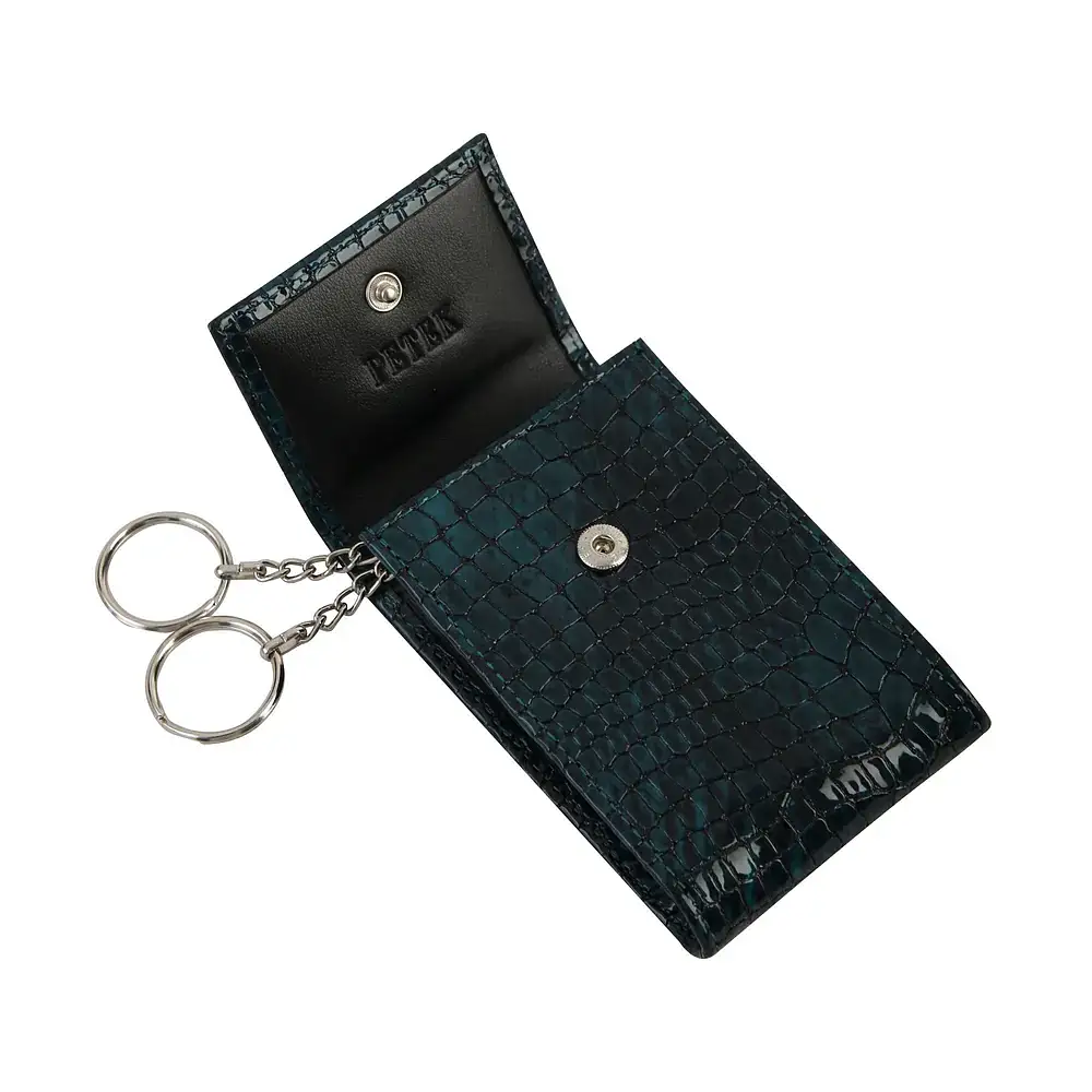 Защёлкивается на кнопку. В ней можно разместить ключи длиной до 9 сантиметров.