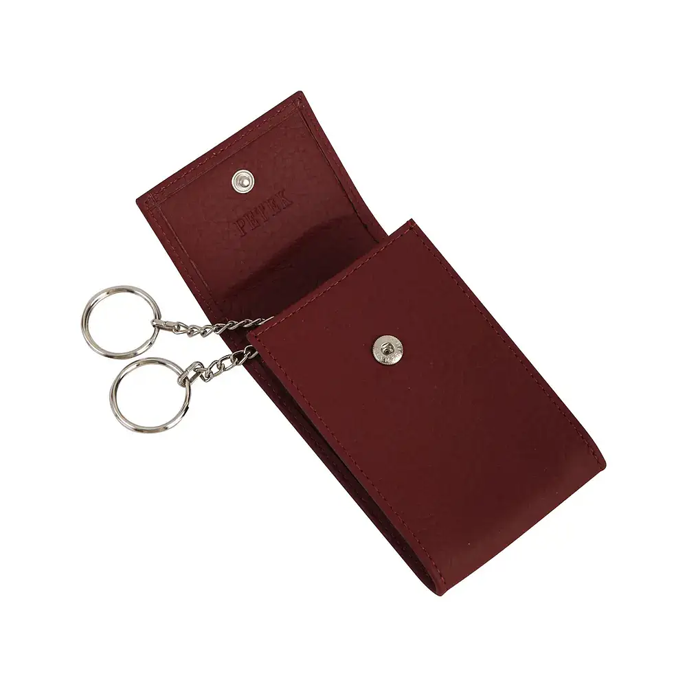 Защёлкивается на кнопку. В ней можно разместить ключи длиной до 9 сантиметров.