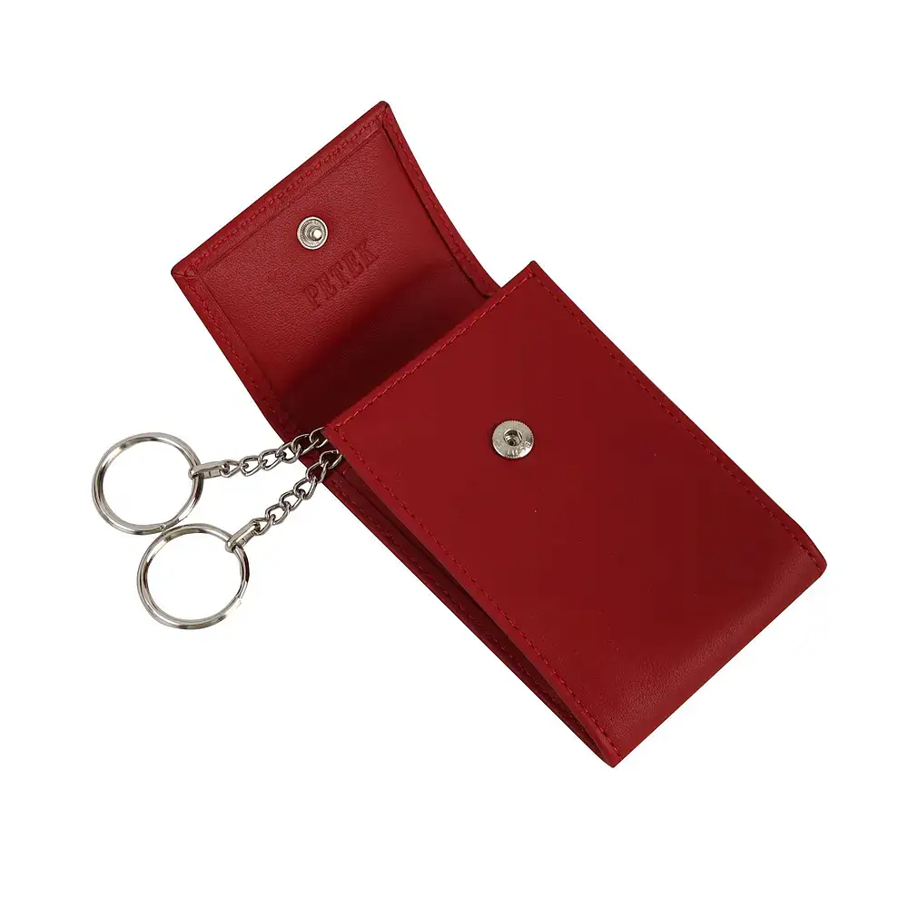 Защёлкивается на кнопку. В ней можно разместить ключи длиной до 9 сантиметров.