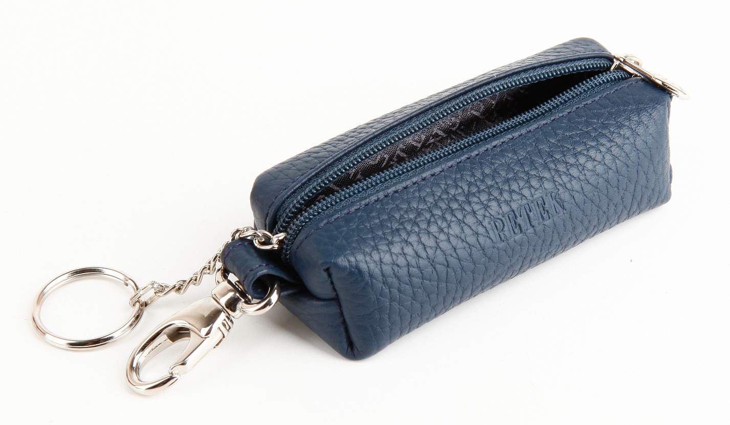 Ключница из натуральной кожи Petek . Закрывается на молнию, внутри кольцо держатель для ключей. Снаружи карабин для ношения на поясе.