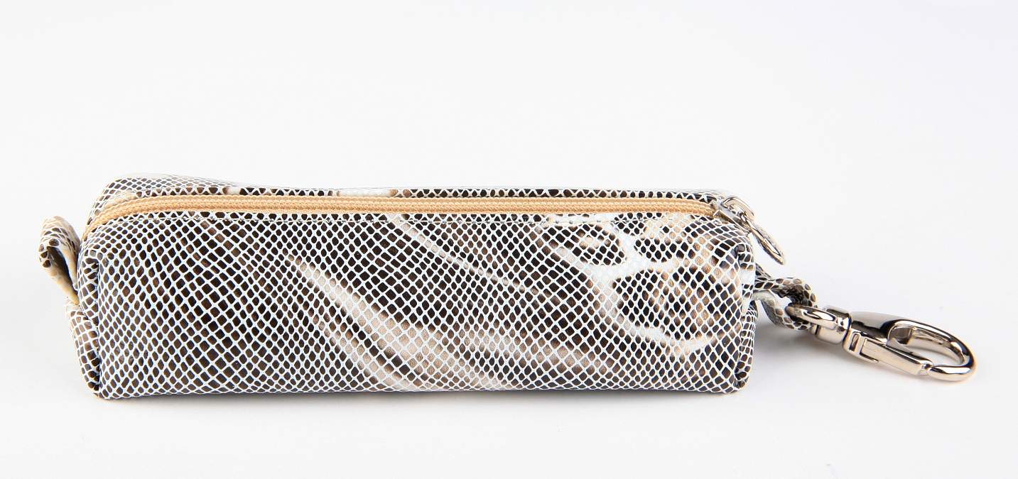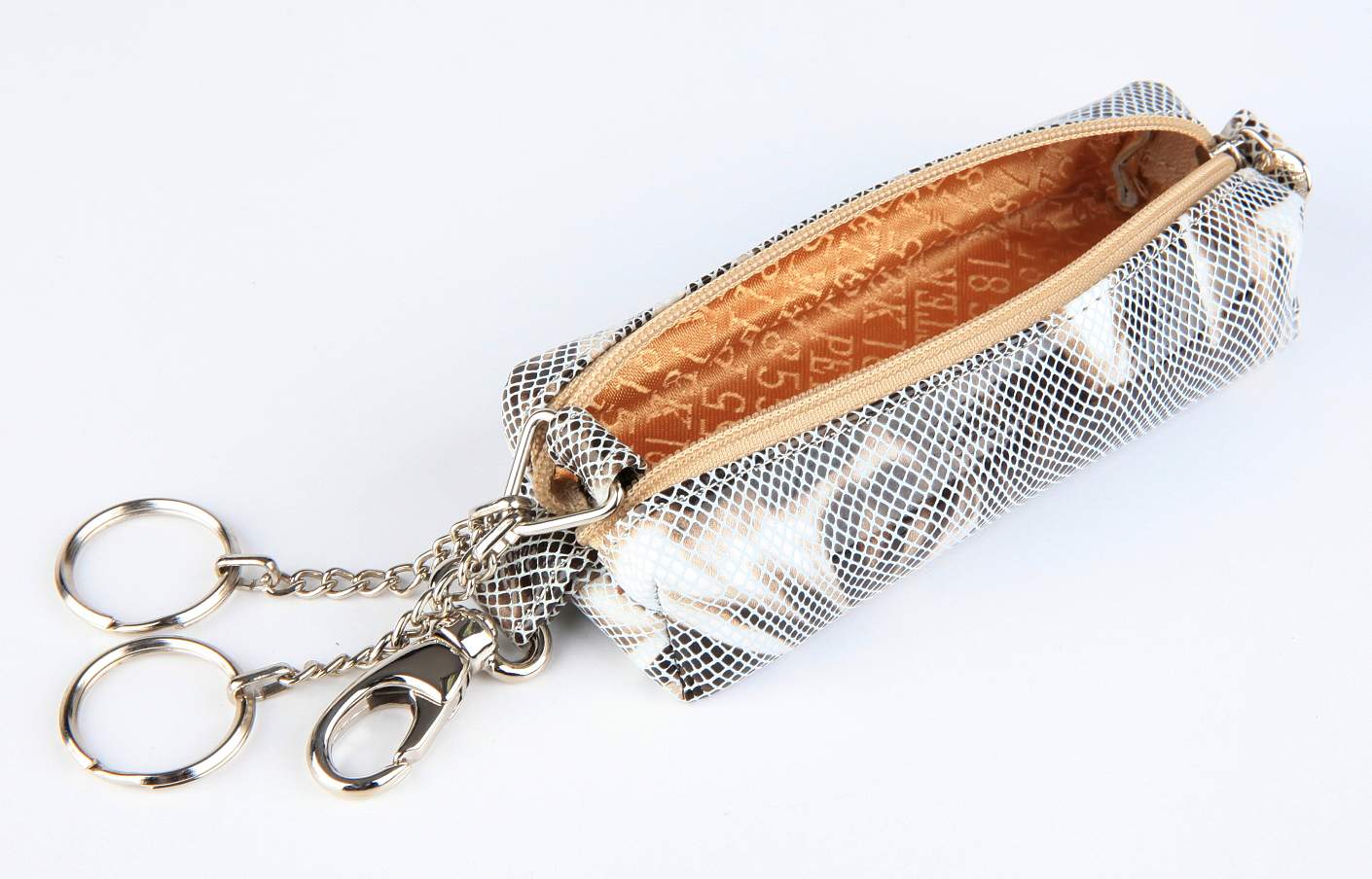 Ключница из натуральной кожи. Закрывается на молнию, внутри кольцо держатель для ключей. Снаружи карабин для ношения на поясе.
