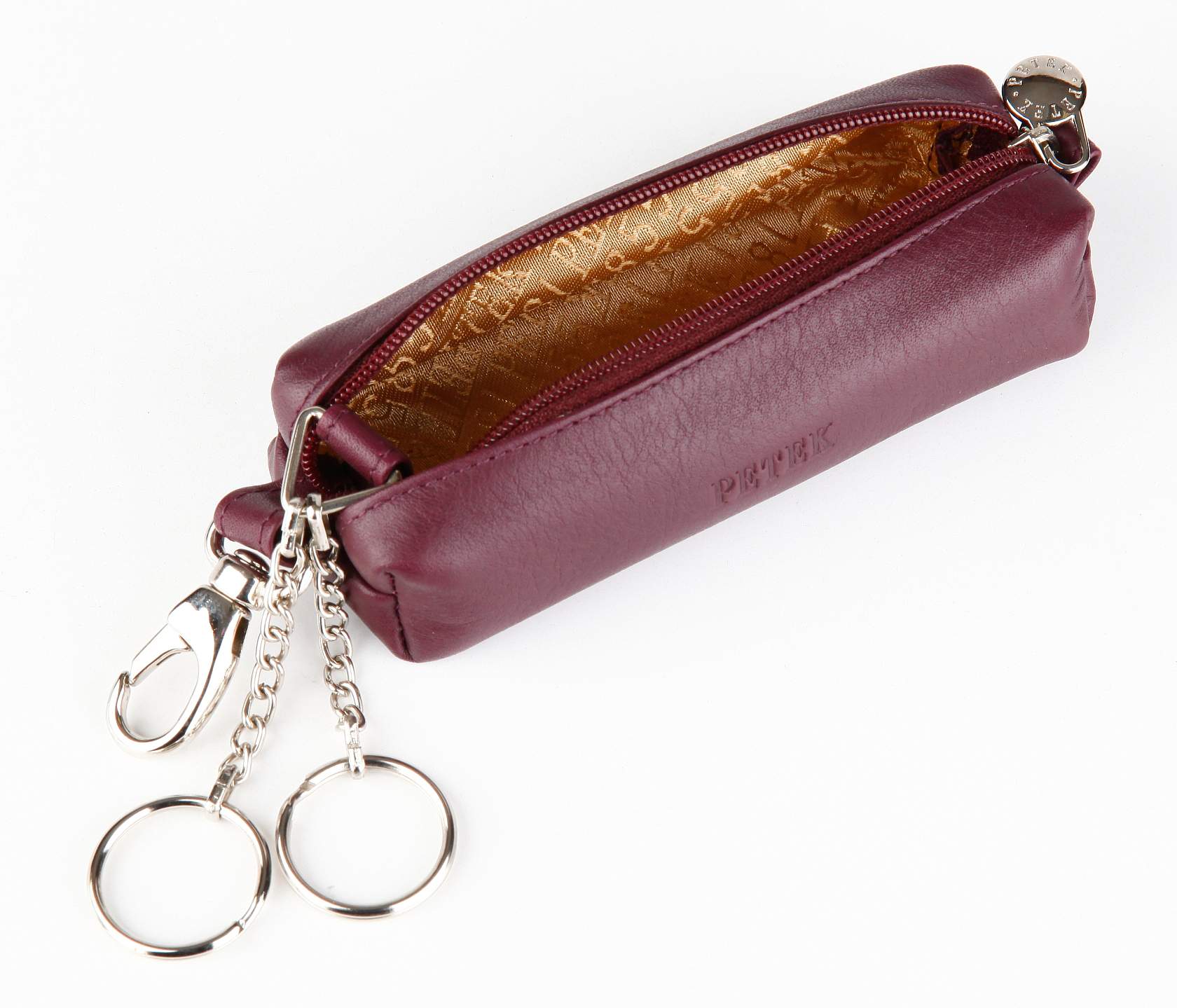 Ключница из натуральной кожи Petek . Закрывается на молнию, внутри кольцо держатель для ключей. Снаружи карабин для ношения на поясе.