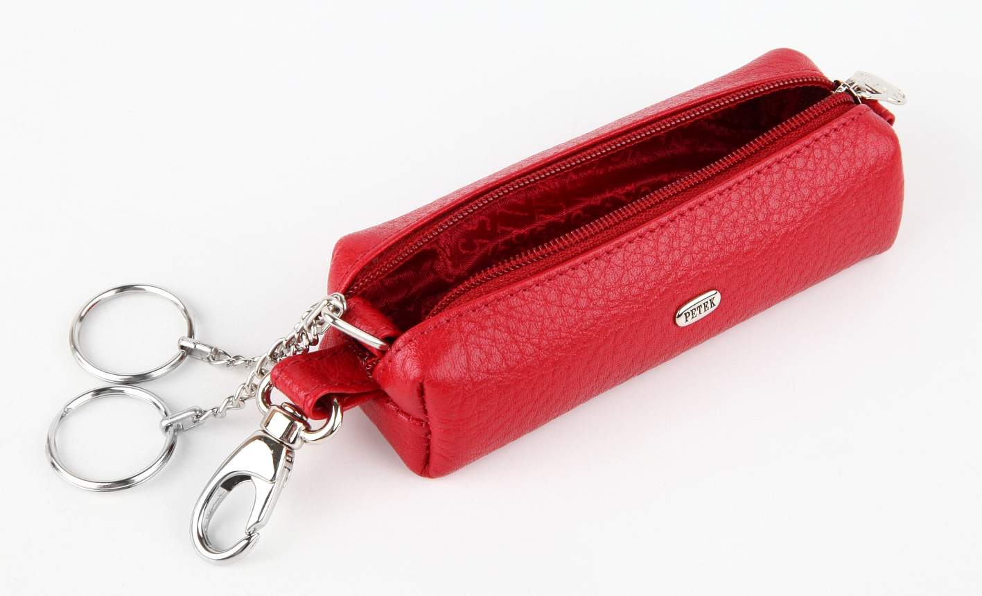 Ключница из натуральной кожи Petek обеспечивает безопасное и удобное хранение ваших ключей. Она закрывается на молнию, а внутри ключницы расположены два металлических кольца для ключей на цепочках. Снаружи ключницы, на одной из ее боковых сторон, имеется карабин для удобного ношения на поясе. Этот стильный и функциональный аксессуар позволит вам всегда иметь доступ к своим ключам и при этом сохранять их в безопасности.