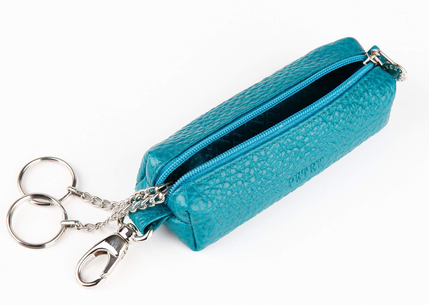 Ключница из натуральной кожи Petek обеспечивает безопасное и удобное хранение ваших ключей. Она закрывается на молнию, а внутри ключницы расположены два металлических кольца для ключей на цепочках. Снаружи ключницы, на одной из ее боковых сторон, имеется карабин для удобного ношения на поясе. Этот стильный и функциональный аксессуар позволит вам всегда иметь доступ к своим ключам и при этом сохранять их в безопасности.