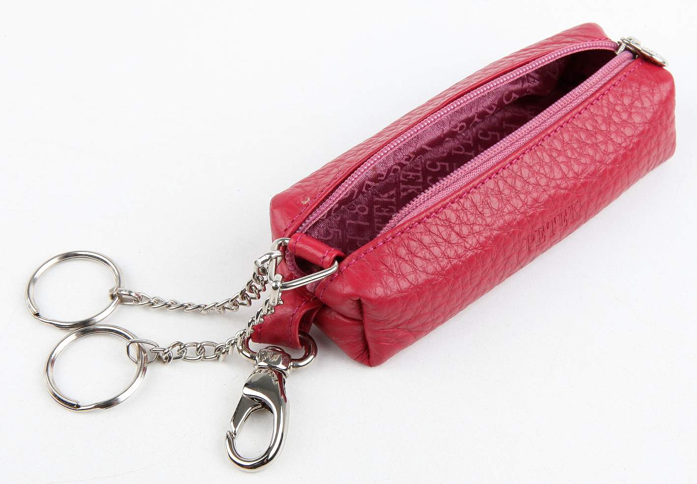 Ключница из натуральной кожи Petek обеспечивает безопасное и удобное хранение ваших ключей. Она закрывается на молнию, а внутри ключницы расположены два металлических кольца для ключей на цепочках. Снаружи ключницы, на одной из ее боковых сторон, имеется карабин для удобного ношения на поясе. Этот стильный и функциональный аксессуар позволит вам всегда иметь доступ к своим ключам и при этом сохранять их в безопасности.