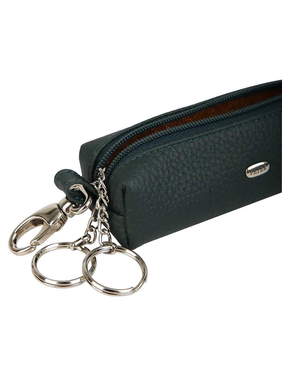 Ключница из натуральной кожи Petek обеспечивает безопасное и удобное хранение ваших ключей. Она закрывается на молнию, а внутри ключницы расположены два металлических кольца для ключей на цепочках. Снаружи ключницы, на одной из ее боковых сторон, имеется карабин для удобного ношения на поясе. Этот стильный и функциональный аксессуар позволит вам всегда иметь доступ к своим ключам и при этом сохранять их в безопасности.