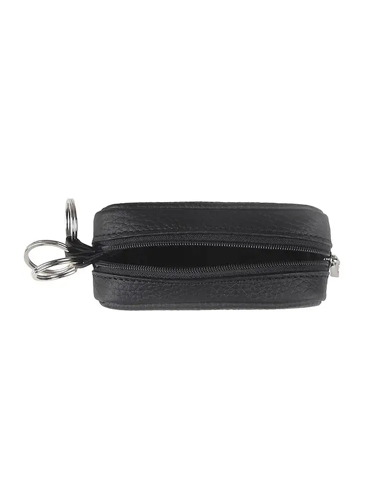 Ключница из натуральной телячьей кожи. Прямоугольная форма, застёжка-молния. Внутри три кольца для ключей. Размеры: 11 × 4 × 6 см. Вместительная модель для большого количества ключей.