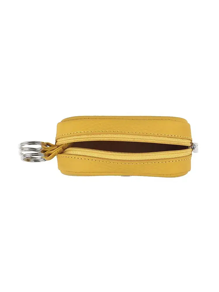 Ключница из натуральной телячьей кожи. Прямоугольная форма, застёжка-молния. Внутри три кольца для ключей. Размеры: 11 × 4 × 6 см. Вместительная модель для большого количества ключей.
