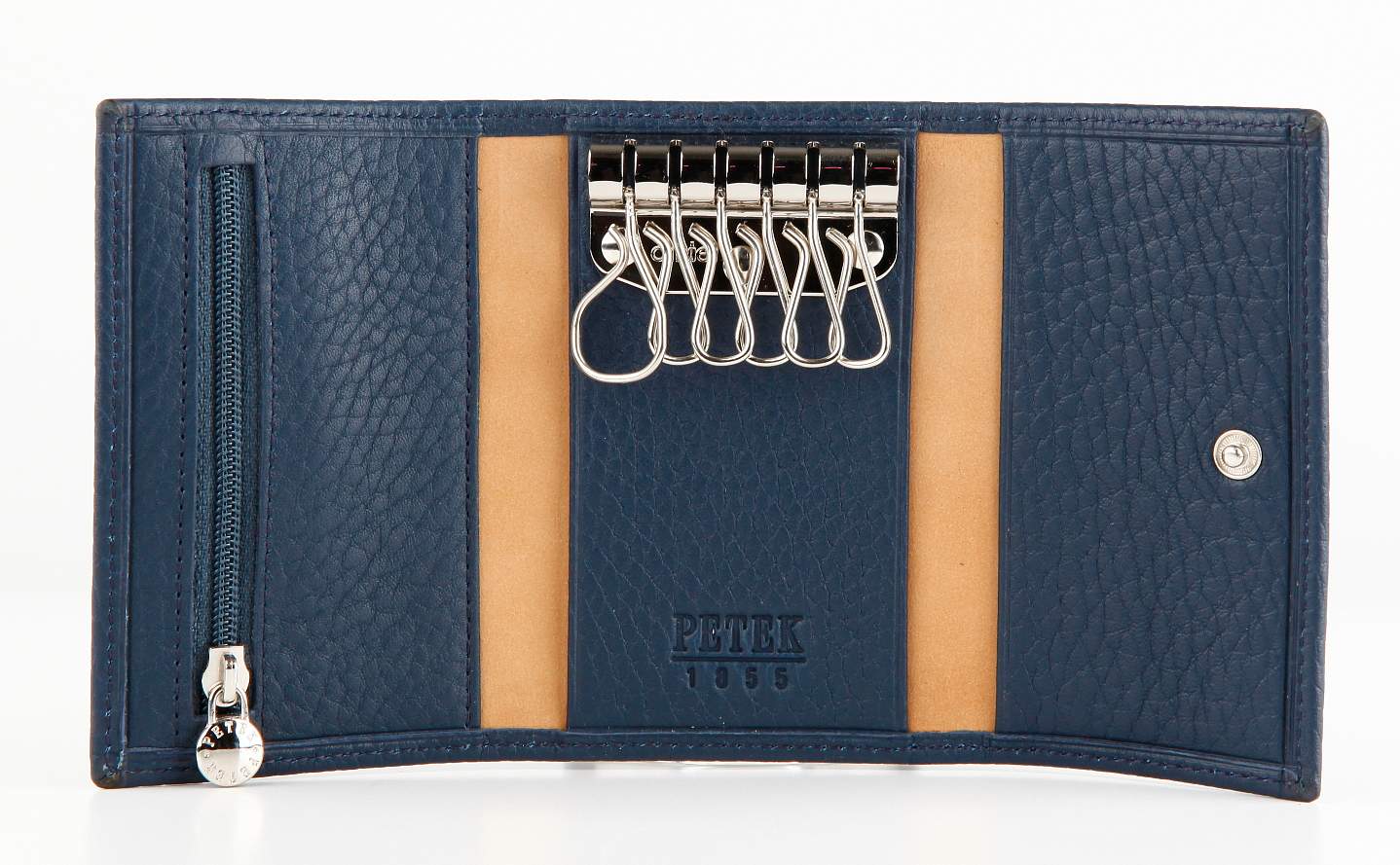 Кожаная ключница Petek.Внутри 6 карабинов для ключей и небольшой кармашек на молнии. Закрывается на кнопку.