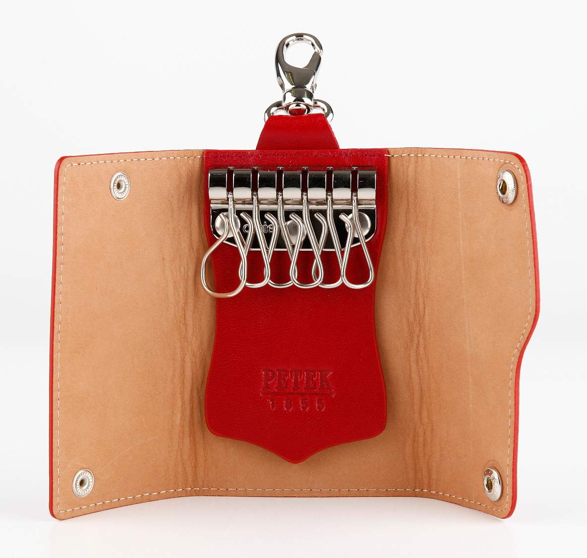 Вместительная кожаная ключница Petek. Закрывается широким клапаном на двух кнопках. Внутри: шесть держателей для ключей.