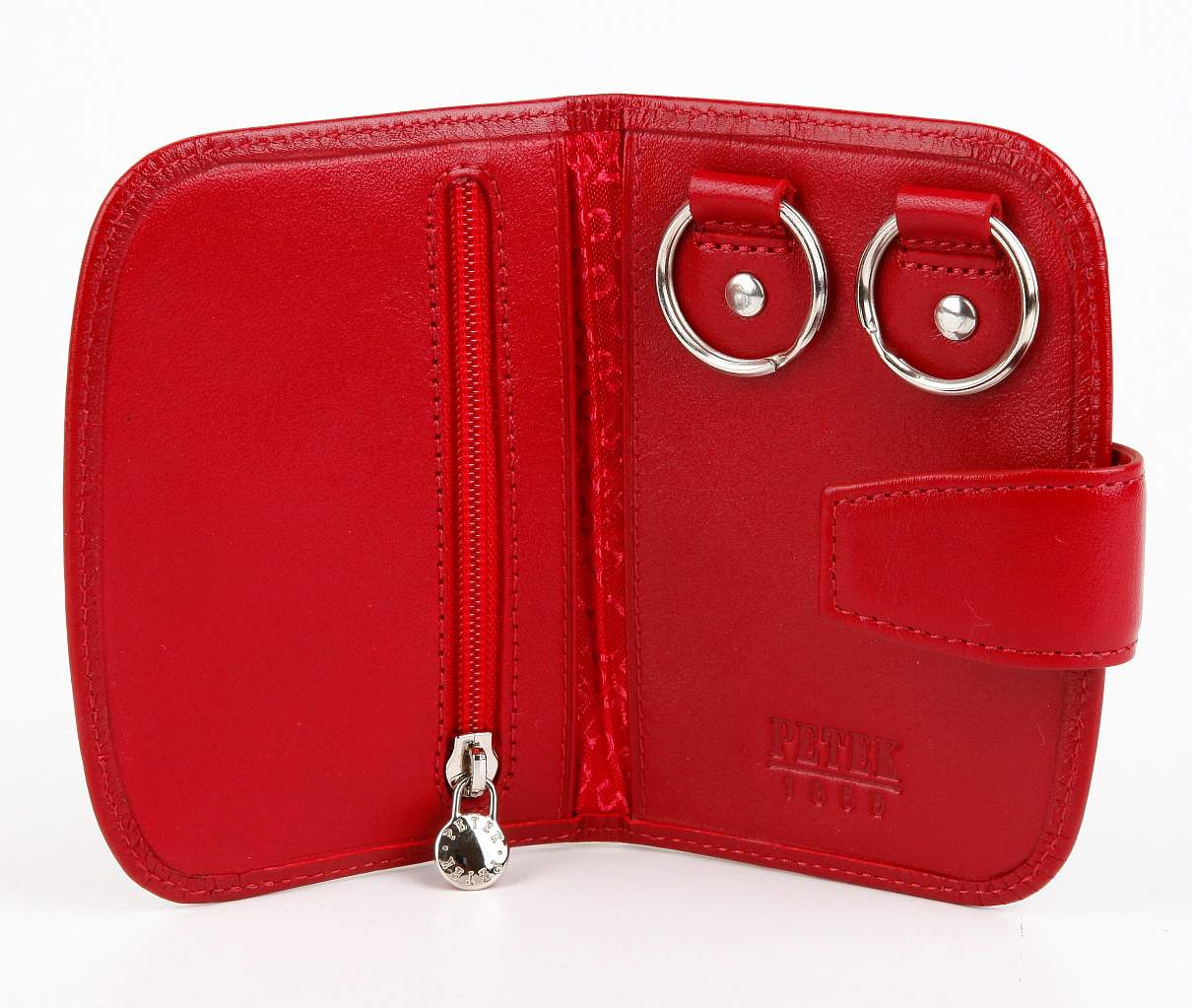 Компактная красивая ключница Petek. Внутри два кольца для ключей, кармашек на молнии. Закрывается на кнопку.