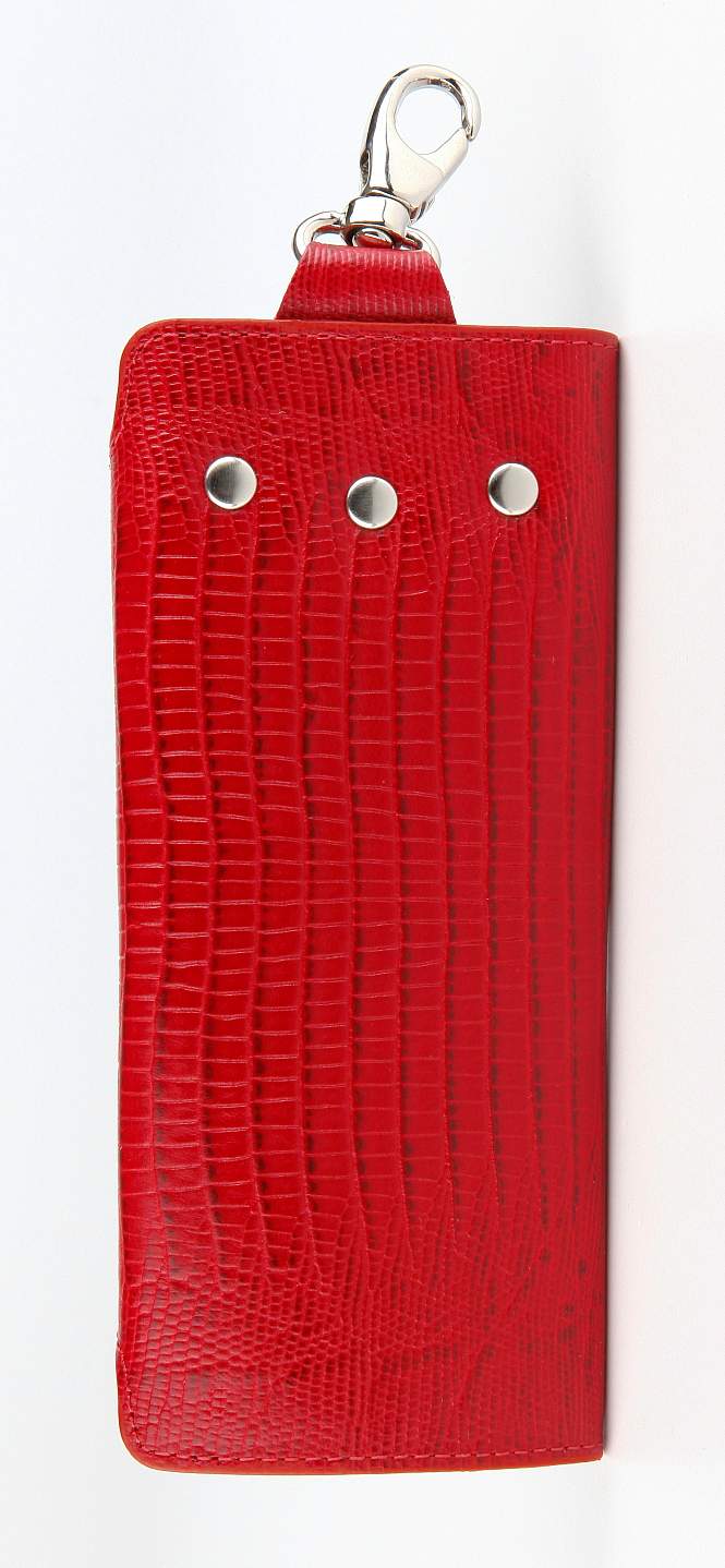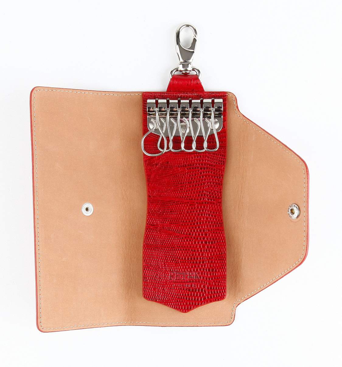 Вместительная ключница из качественной натуральной кожи. Застегивается на кнопку, шесть держателей для ключей, а также крепление в виде карабина.