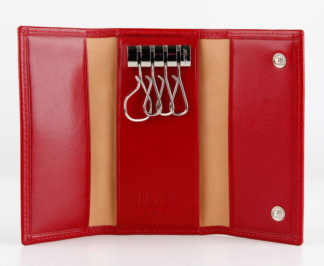 Красивая ключница Petek из натуральной кожи. Застегивается на две кнопки, два кармашка, четыре держателя для ключей.