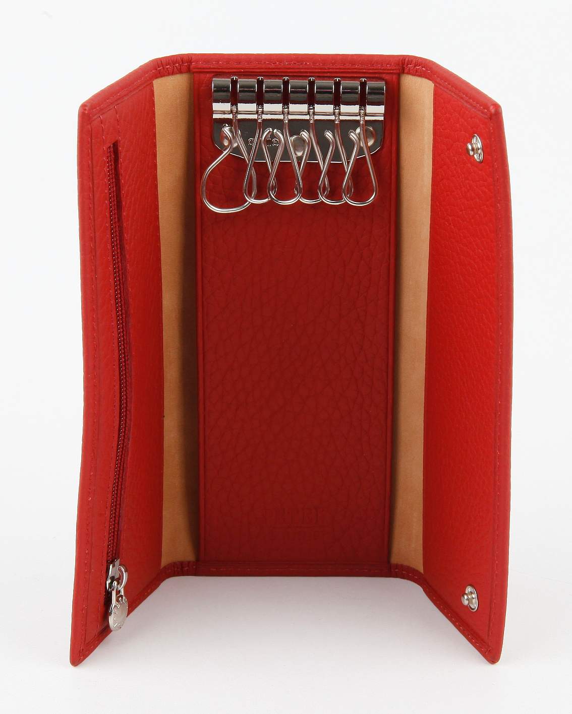 Стильный кожаный футляр на 6 ключей, внутри небольшое отделение на молнии. Закрывается на 2 кнопки.
