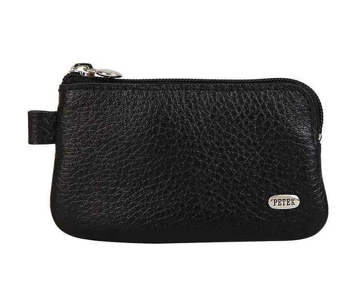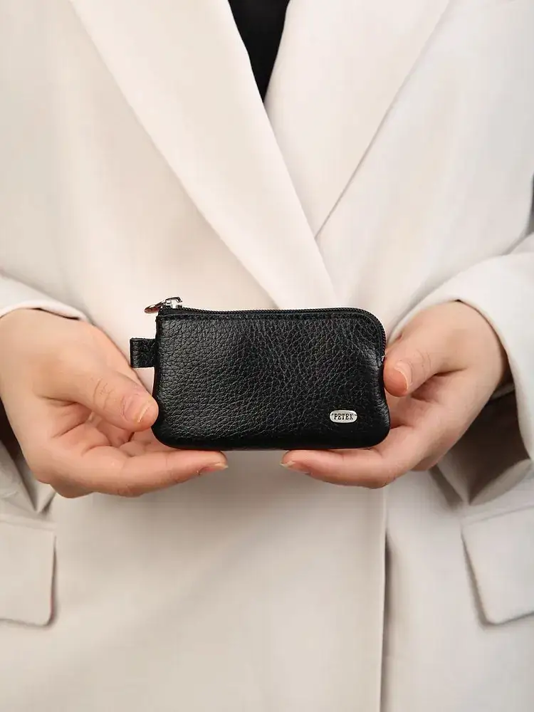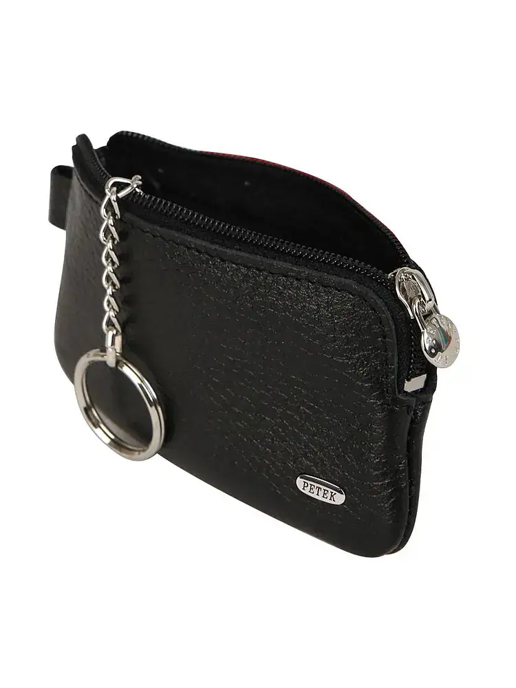 Ключница Petek изготовлена из мягкой натуральной кожи высокого качества. Она закрывается на молнию, а внутри нее расположено одно кольцо для ключей на прочной цепочке. Такая ключница обеспечит надежное хранение ваших ключей и станет стильным аксессуаром для вашей сумки или кармана.