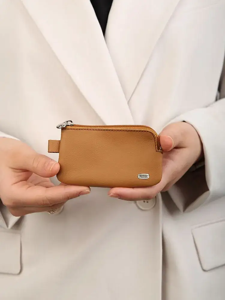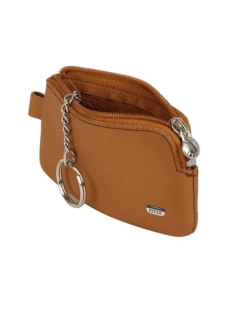 Ключница Petek изготовлена из мягкой натуральной кожи высокого качества. Она закрывается на молнию, а внутри нее расположено одно кольцо для ключей на прочной цепочке. Такая ключница обеспечит надежное хранение ваших ключей и станет стильным аксессуаром для вашей сумки или кармана.