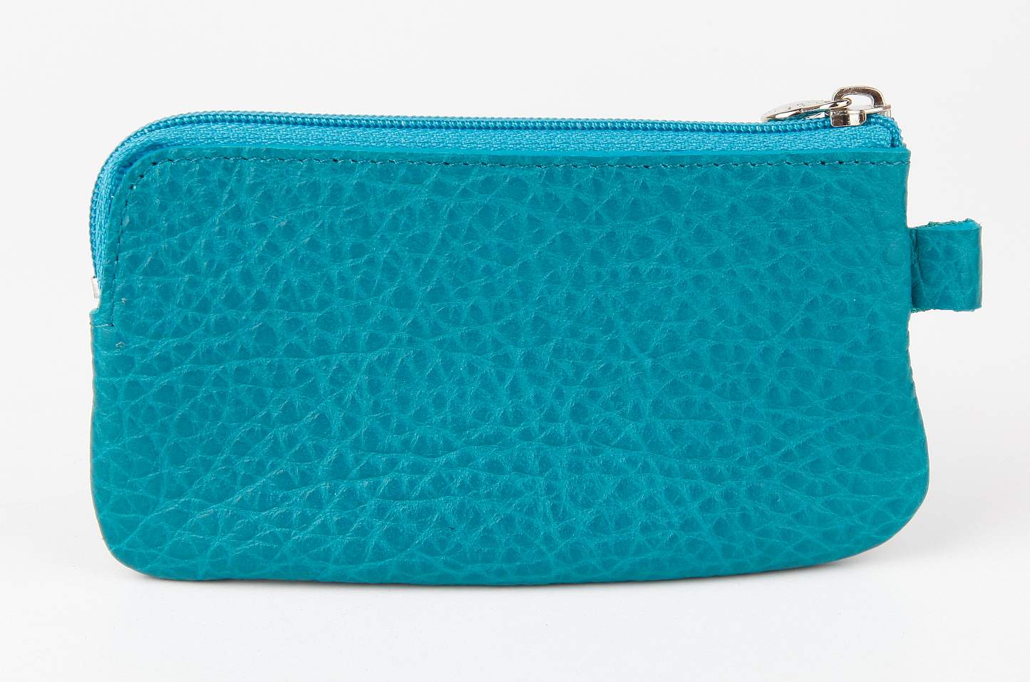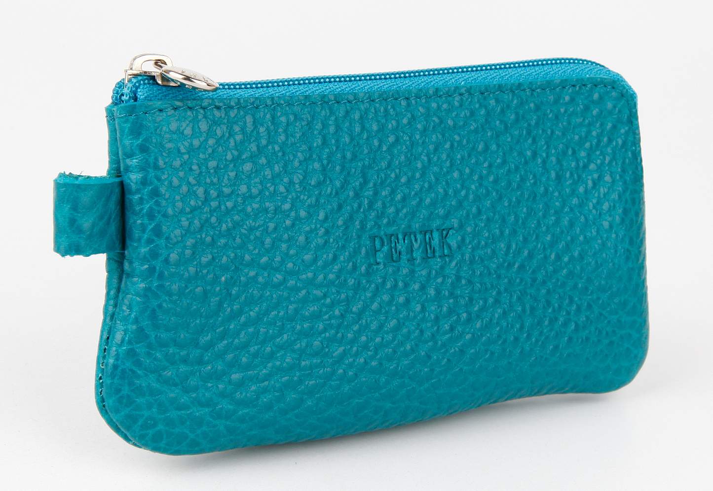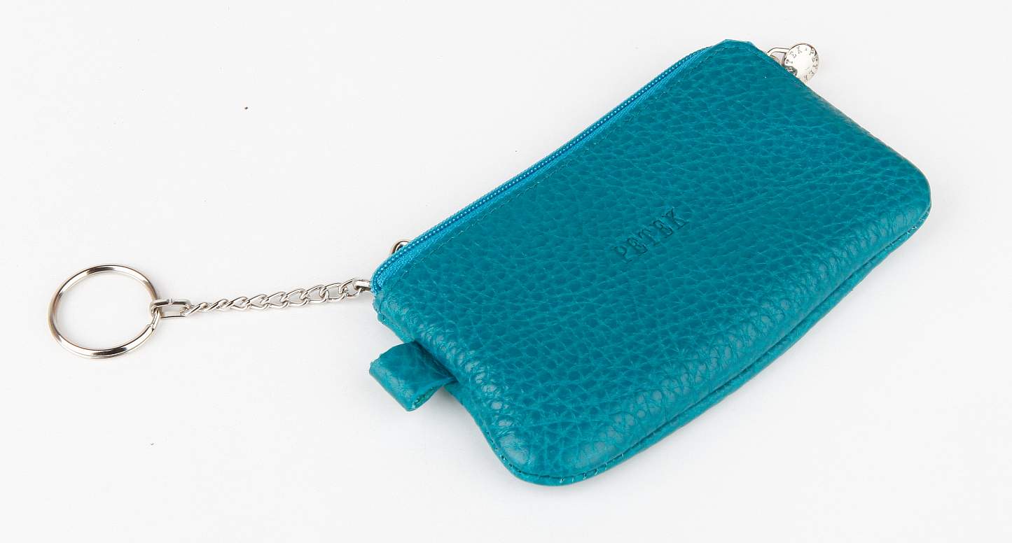 Ключница Petek из натуральной высококачественной кожи синего цвета с зернистой фактурой. Закрывается на молнию. Внутри кольцо-держатель для ключей.