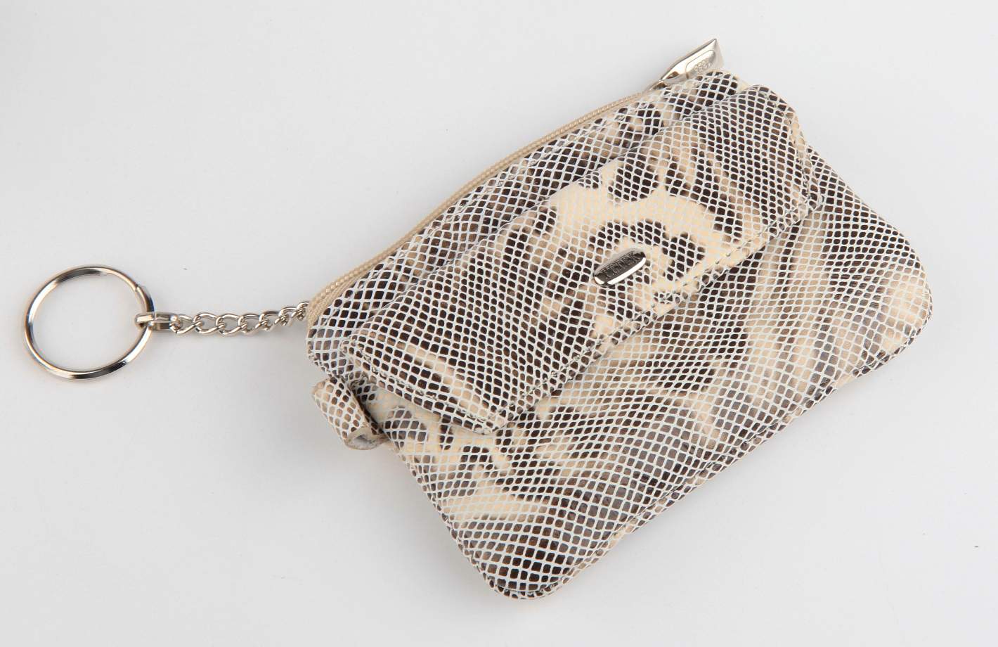 Кожаная ключница Petek. Закрывается на молнию. Внутри два кольца для ключей (на цепочках). Снаружи отделение для мелочи (на кнопке).