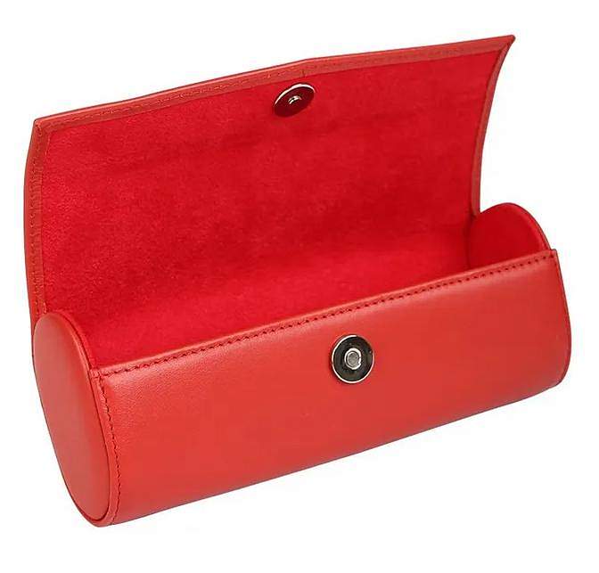 Стильный и отличный футляр для очков. Изделие закрывается на клапан с магнитной кнопкой. Клапан с лицевой стороны оформлен металлической пластиной с гравировкой в виде названия бренда-производителя. Внутренняя поверхность изделия выполнена из бархатистой ткани, что позволит защитить очки от механических повреждений.