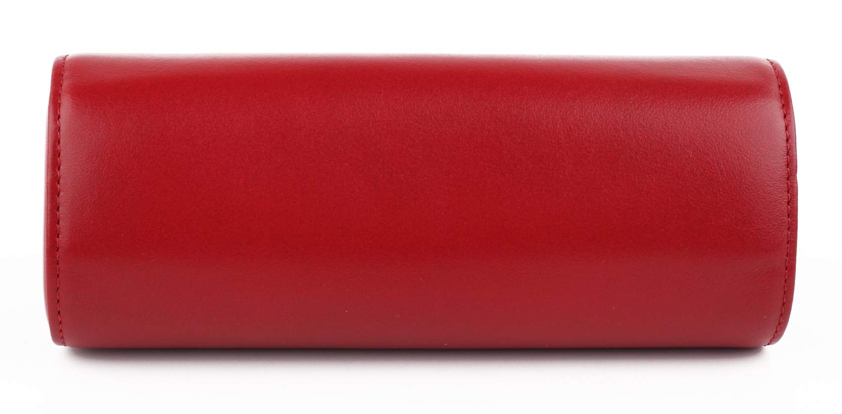 Стильный и отличный футляр для очков. Изделие закрывается на клапан с магнитной кнопкой. Клапан с лицевой стороны оформлен металлической пластиной с гравировкой в виде названия бренда-производителя. Внутренняя поверхность изделия выполнена из бархатистой ткани, что позволит защитить очки от механических повреждений.