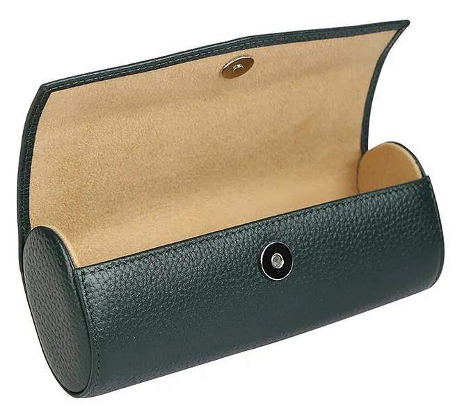 Стильный и отличный футляр для очков. Изделие закрывается на клапан с магнитной кнопкой. Клапан с лицевой стороны оформлен металлической пластиной с гравировкой в виде названия бренда-производителя. Внутренняя поверхность изделия выполнена из бархатистой ткани, что позволит защитить очки от механических повреждений.