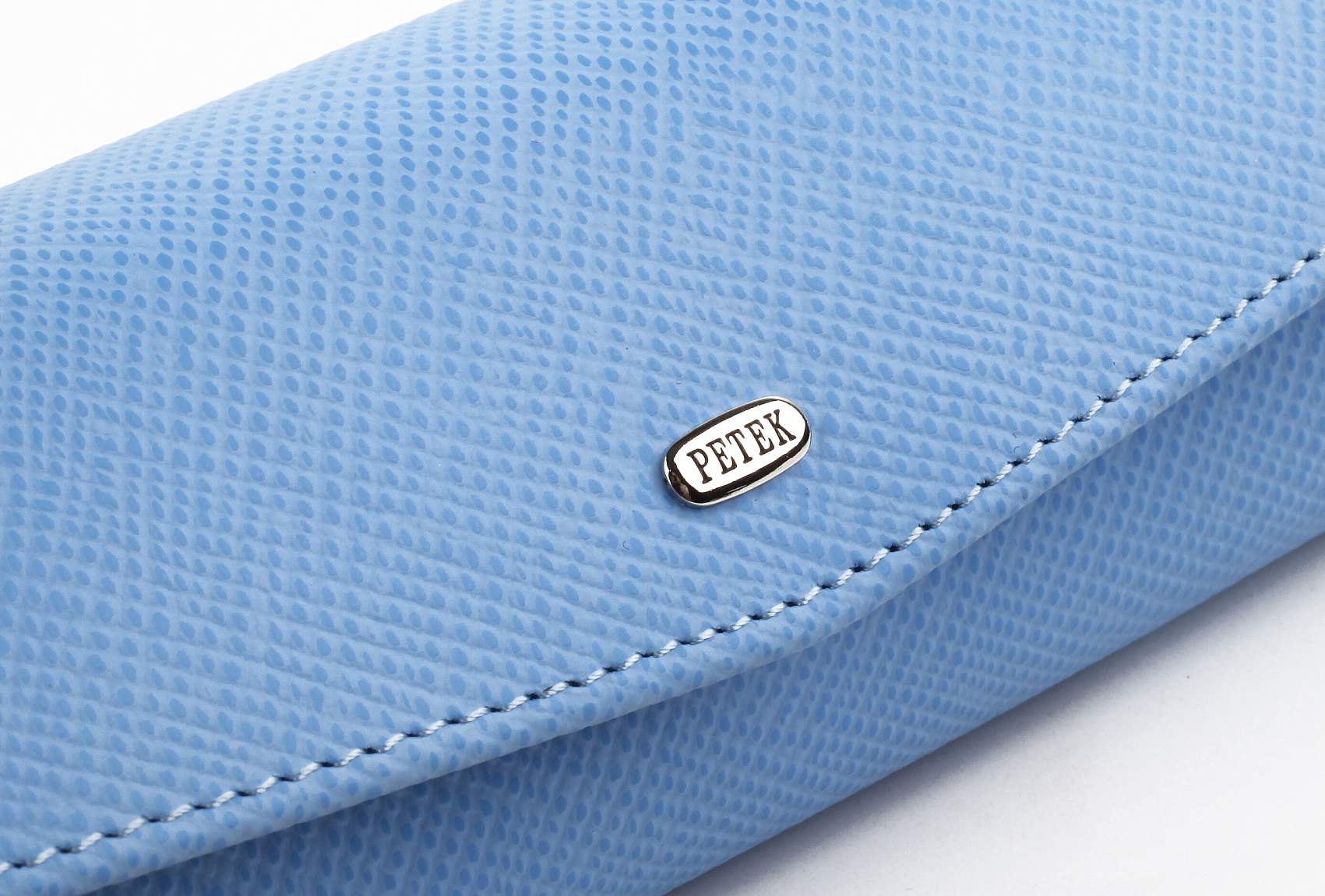Стильный кожаный футляр для очков Petek. Жесткий каркас не позволит сломаться Вашим очкам. Внутренняя поверхность изделия выполнена из бархатистой ткани, что позволит защитить очки от механических повреждений.