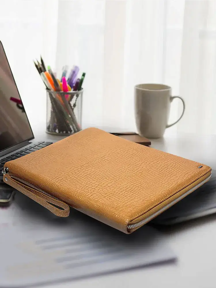 Папка закрывается на молнию, что обеспечивает надежное хранение документов и предотвращает их потерю. Съемный ремешок позволяет носить папку на плече или через плечо, делая ее удобной для использования в повседневной жизни.
