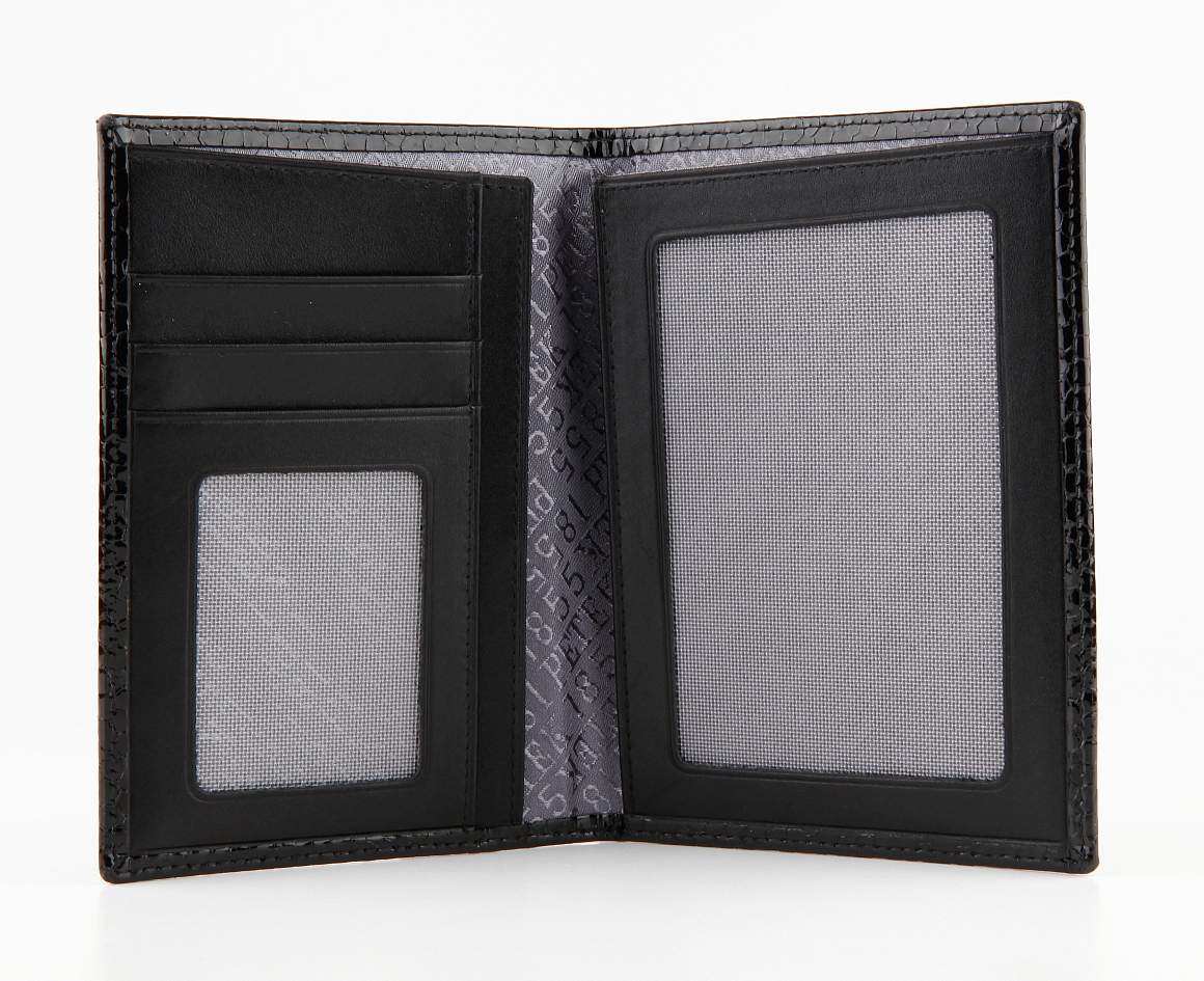 Паспорт вкладывается сверху в раскрытом виде. В обложке находятся 3 отделения для различных карточек, одно из них с сеточкой, отделение для прав старого образца или ID карты, а также в ней размещен внутренний карман. Упакована обложка в фирменную коробку с логотипом Petek 1855.