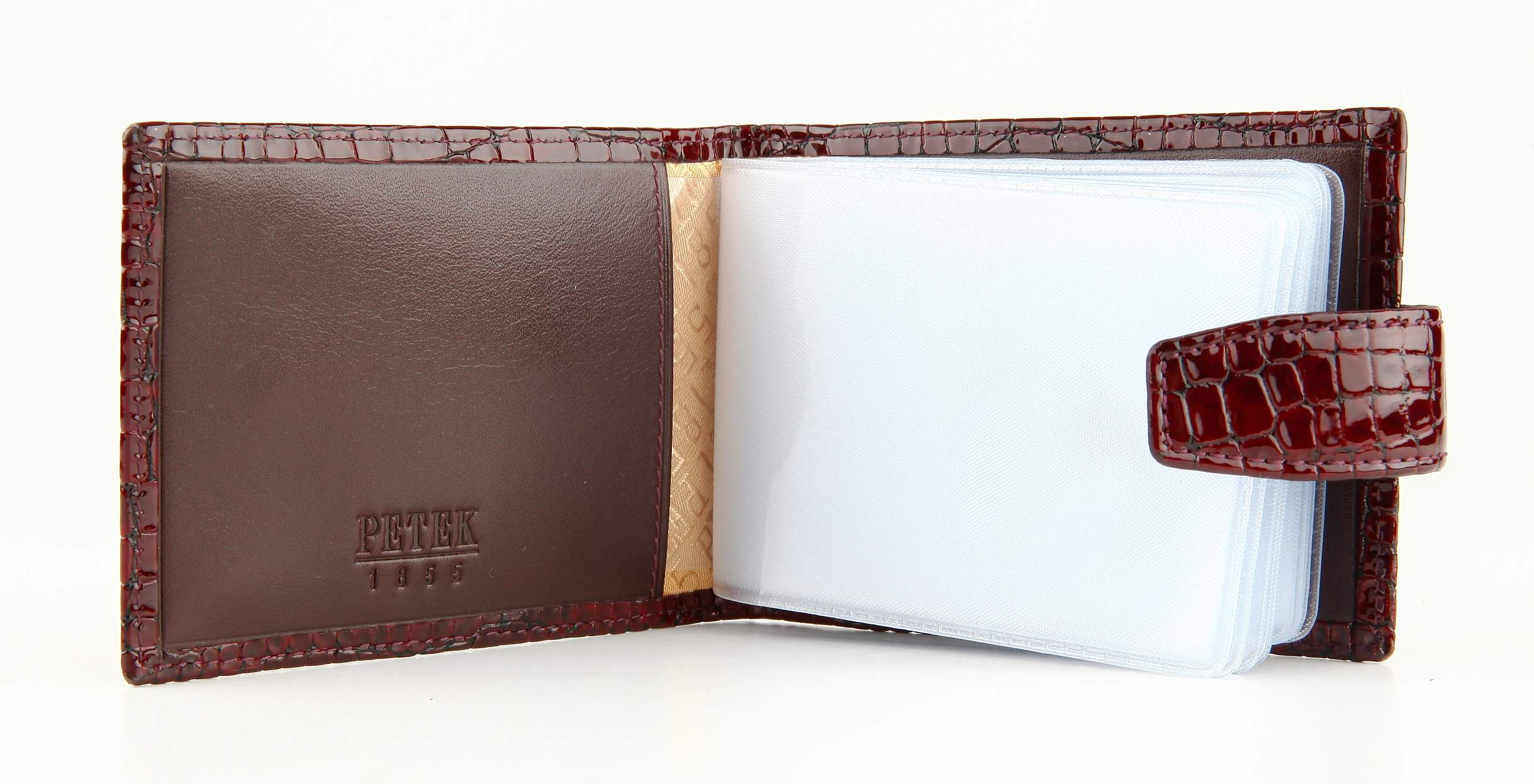 Визитница PETEK изготовлена из высококачественной натуральной кожи и отличается утонченным, стильным дизайном. Этот практичный аксессуар оснащен кнопкой для надежного закрытия. Визитницу можно открыть горизонтально, внутри находится десять прозрачных, прочных файлов для визиток. Блок с файлами можно извлечь из кожаной обложки, что очень удобно при использовании. Представленная модель визитницы идеально подойдет для хранения до десяти визитных карт при одностороннем расположении и до двадцати при двустороннем.