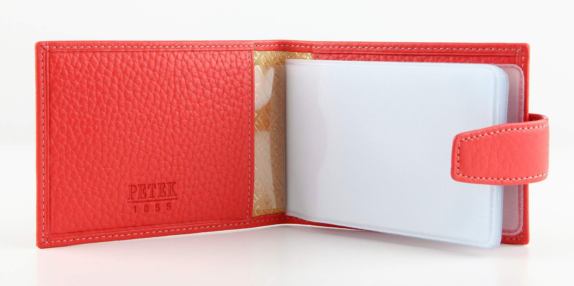 Визитница PETEK изготовлена из высококачественной натуральной кожи и отличается утонченным, стильным дизайном. Этот практичный аксессуар оснащен кнопкой для надежного закрытия. Визитницу можно открыть горизонтально, внутри находится десять прозрачных, прочных файлов для визиток. Блок с файлами можно извлечь из кожаной обложки, что очень удобно при использовании. Представленная модель визитницы идеально подойдет для хранения до десяти визитных карт при одностороннем расположении и до двадцати при двустороннем.