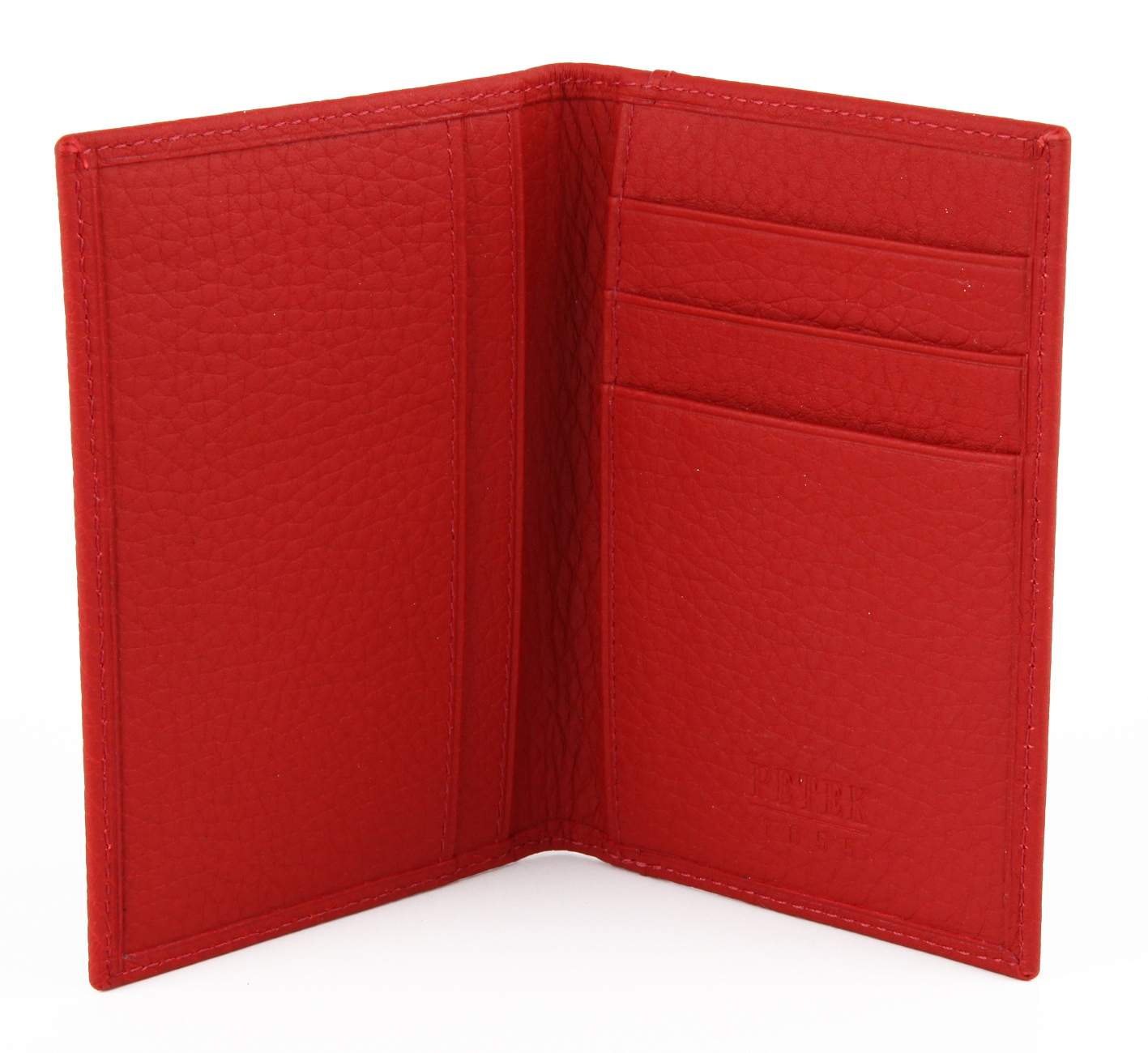 Визитница PETEK изготовлена из натуральной кожи высшего качества. Лицевая сторона изделия украшена небольшой металлической пластиной с гравировкой логотипа бренда. Внутри находятся удобные кармашки для хранения визиток или пластиковых карт. Застежки не предусмотрено, что делает использование визитницы максимально удобным.