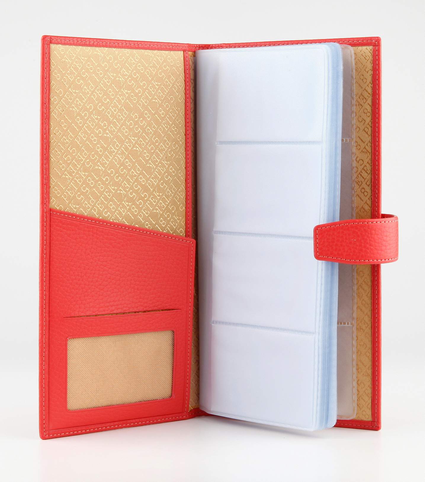 Настольная визитница из натуральной кожи высокого качества. Внутри имеется блок для визиток из 20 плотных пластиковых файлов по 4 отделения. Блок легко вынимается из кожаной обложки. При двустороннем размещении в визитницу помещается 160 карточек. На кожаной обложке внутри имеется дополнительный кармашек и уголок для бумаг.