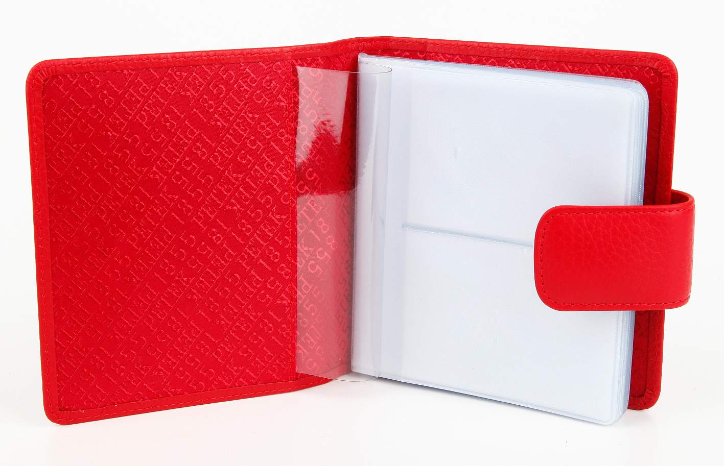 Шикарная визитница из натуральной кожи. Классический дизайн, застегивается на кнопку. Внутри имеются 20 файлов из плотного пластика, по два отделения с каждой стороны. Максимальное количество визитных карточек - 80