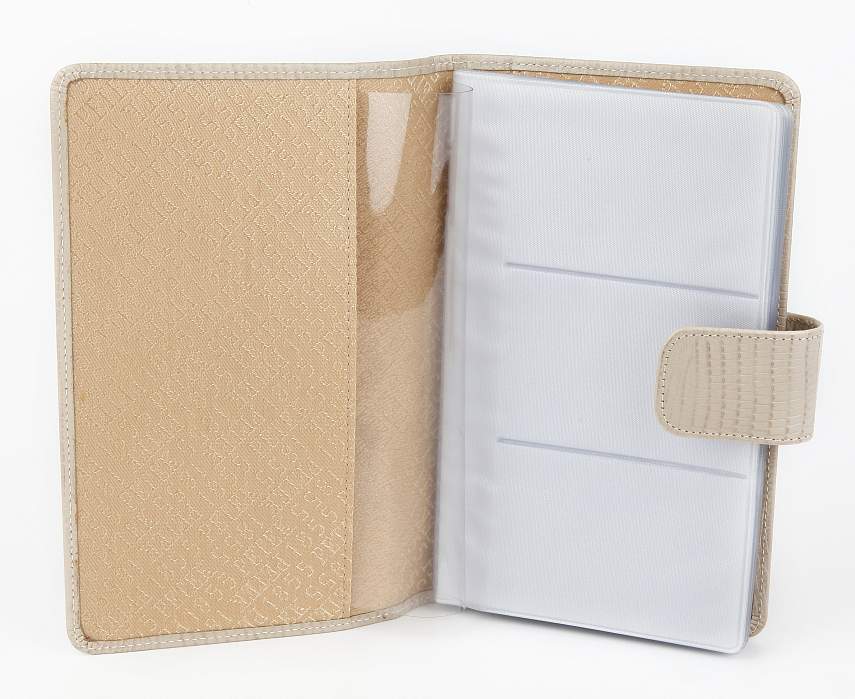 Стильная классическая визитница из натуральной кожи, застегивается на кнопку. Внутри имеются двадцать файлов из прочного пластика. В каждом файле помещается по 3 визитные карточки с одной стороны. Максимальное количество визиток - 120