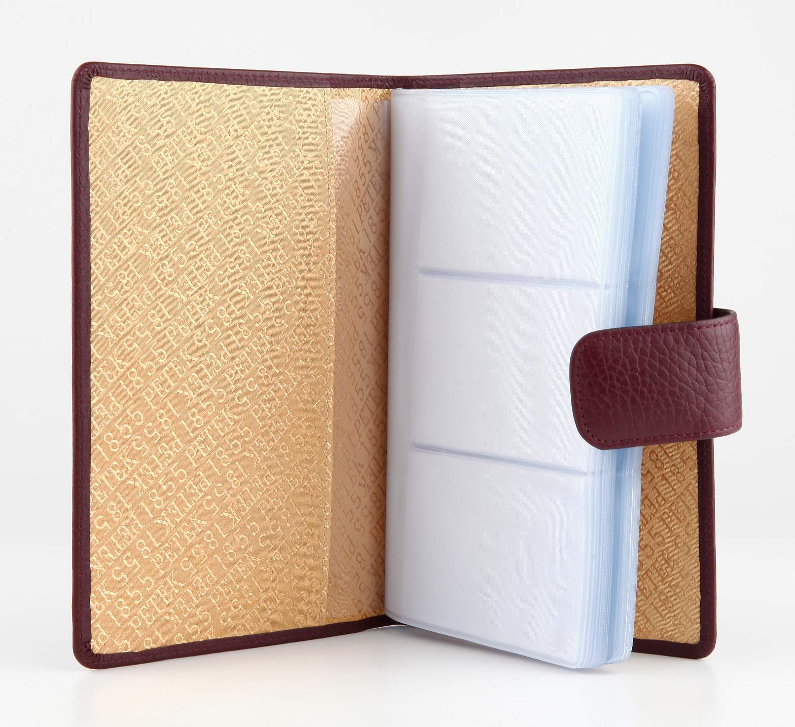 Стильная классическая визитница из натуральной кожи, застегивается на кнопку. Внутри имеются двадцать файлов из прочного пластика. В каждом файле помещается по 3 визитные карточки с одной стороны. Максимальное количество визиток - 120